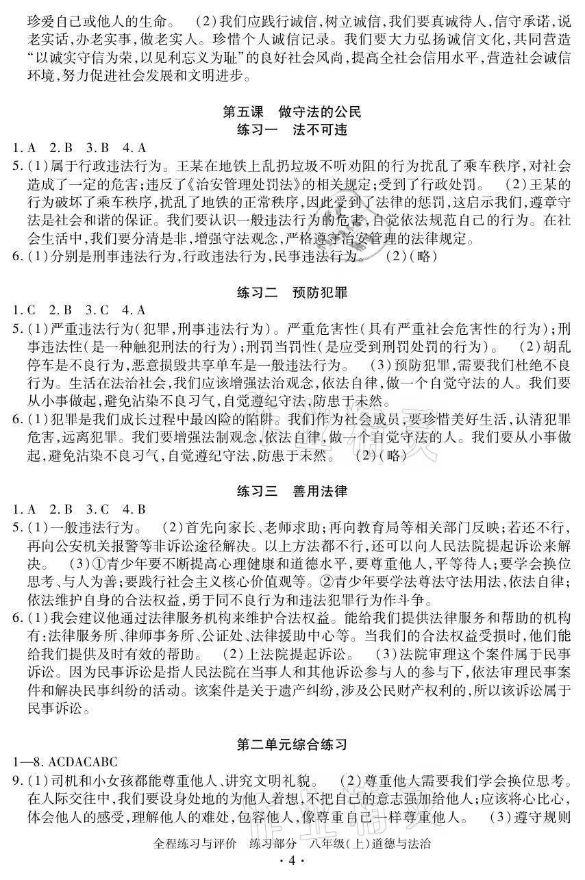 注:目前有些书本章节名称可能整理的还不是很完善,但都是按照顺序排列的,请同学们按照顺序仔细查找。练习册 2021年全程练习与评价八年级道德与法治上册人教版 答案主要是用来给同学们做完题方便对答案用的,请勿直接抄袭。