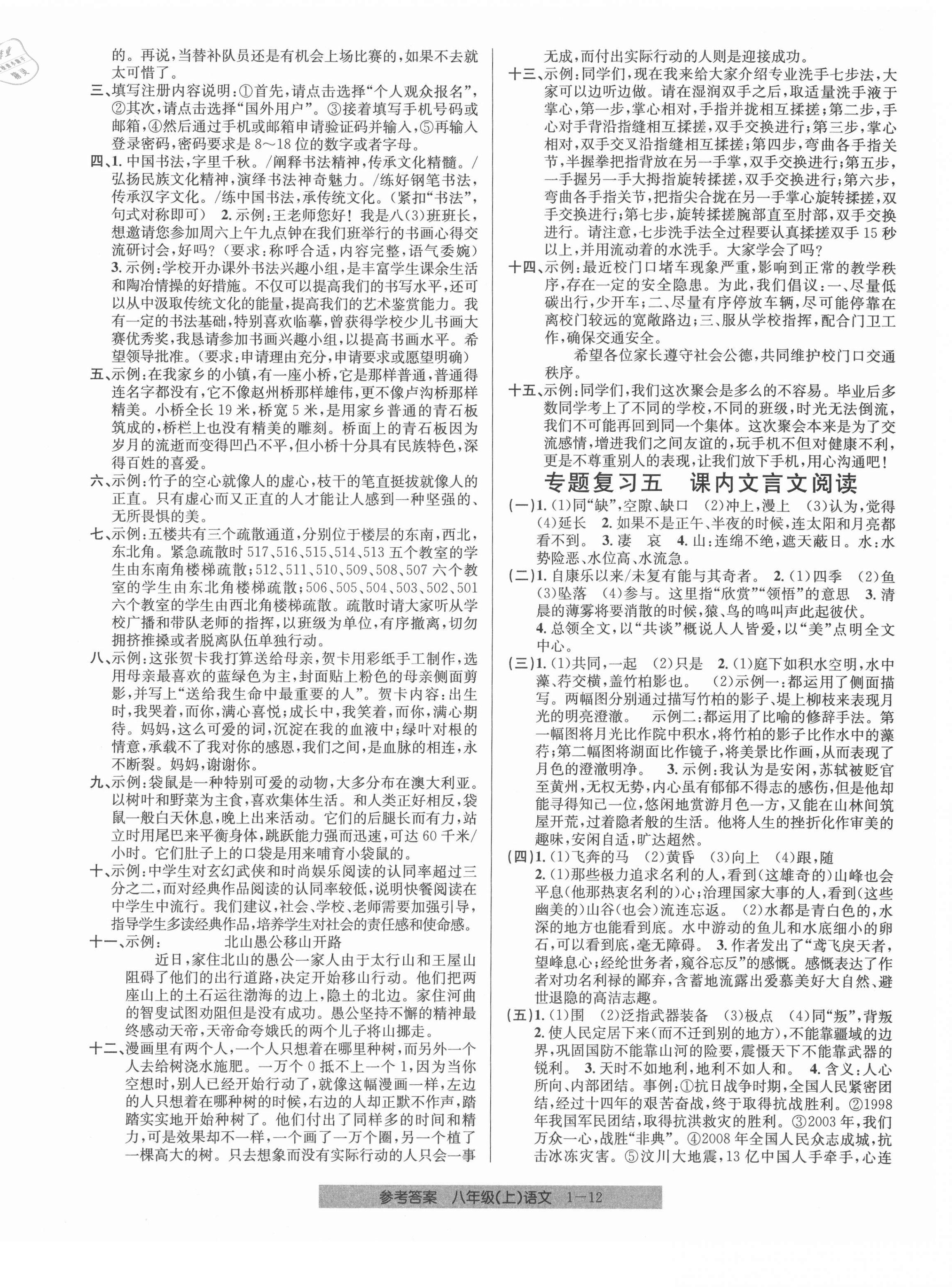注:目前有些书本章节名称可能整理的还不是很完善,但都是按照顺序排列的,请同学们按照顺序仔细查找。练习册 2021年开源图书单元直通车八年级语文上册人教版 答案主要是用来给同学们做完题方便对答案用的,请勿直接抄袭。