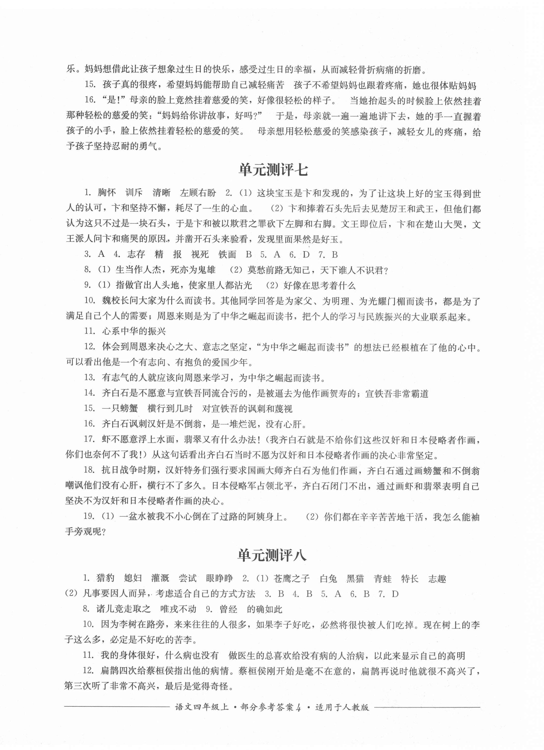 2021年单元测评四川教育出版社四年级语文上册人教版