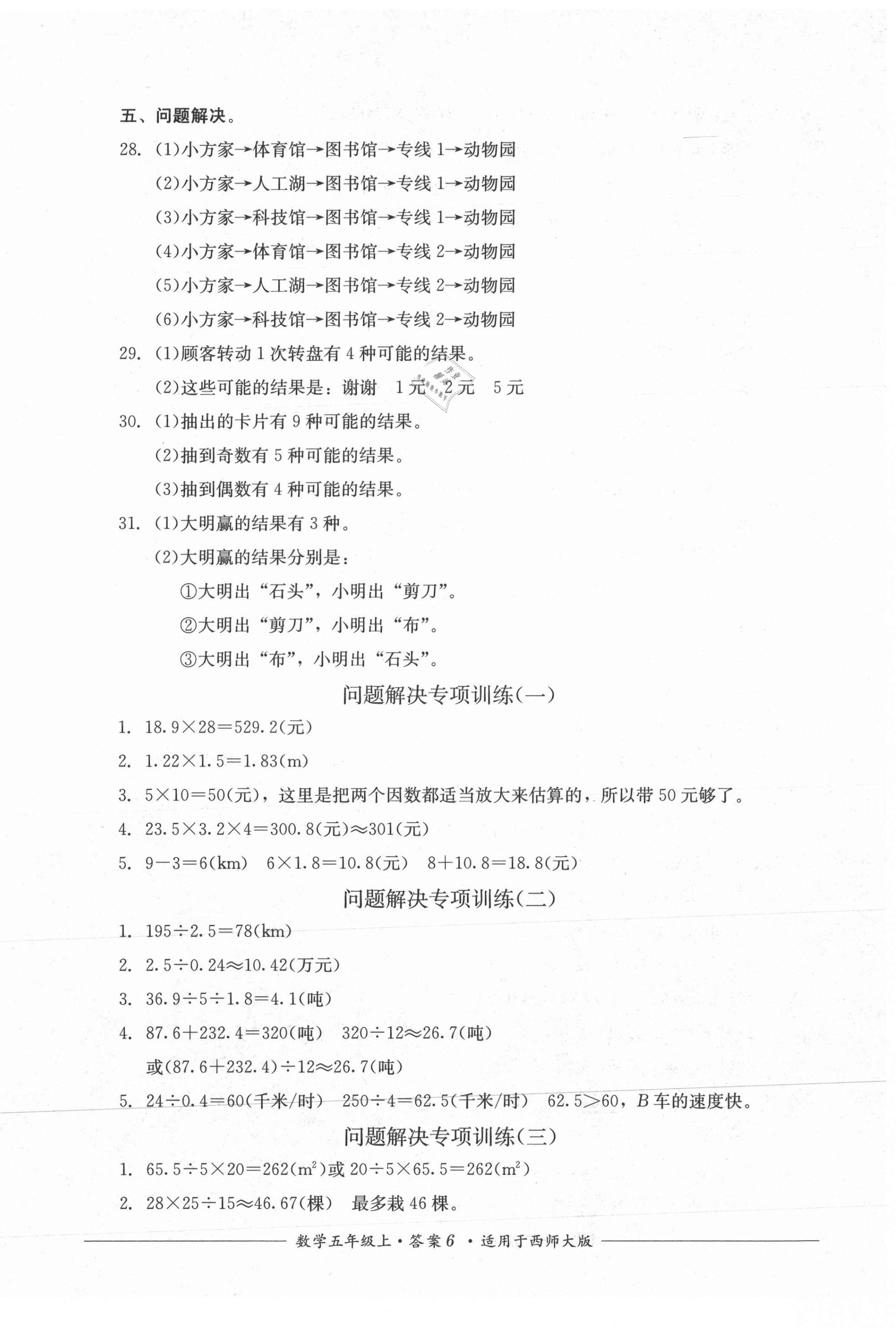 注:目前有些书本章节名称可能整理的还不是很完善,但都是按照顺序排列的,请同学们按照顺序仔细查找。练习册 2021年单元测评四川教育出版社五年级数学上册西师大版 答案主要是用来给同学们做完题方便对答案用的,请勿直接抄袭。