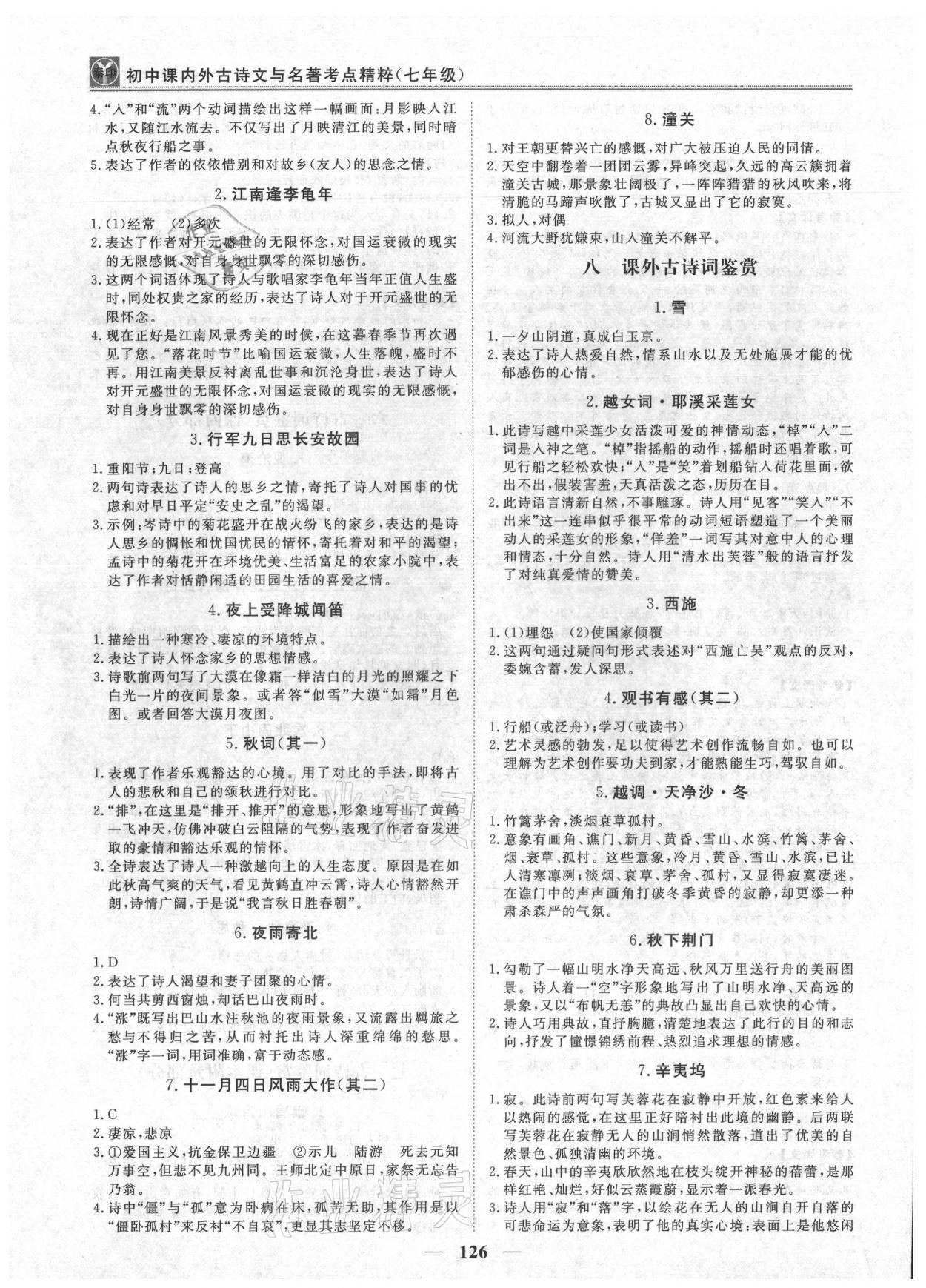 注:目前有些书本章节名称可能整理的还不是很完善,但都是按照顺序排列的,请同学们按照顺序仔细查找。练习册 2021年古诗文与名著考点精粹七年级上册人教版 答案主要是用来给同学们做完题方便对答案用的,请勿直接抄袭。