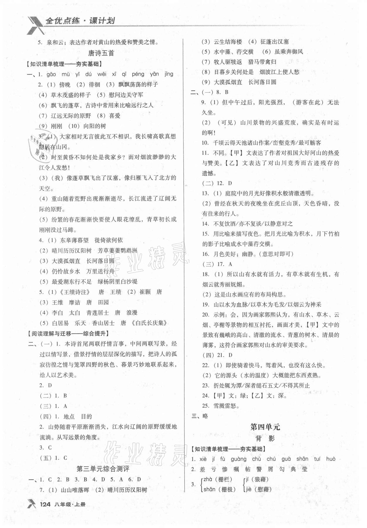 2021年全优点练课计划八年级语文上册语文版