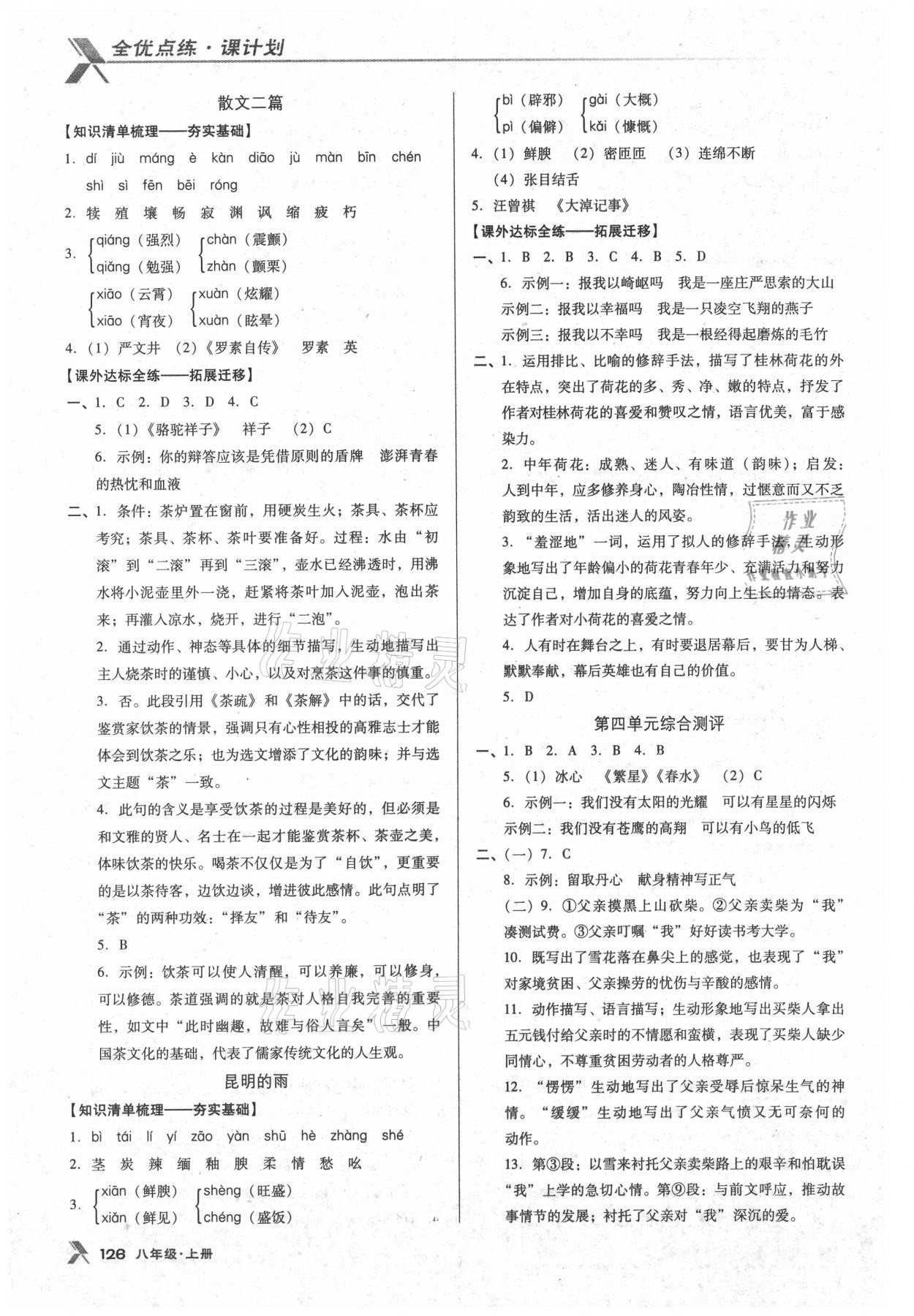 2021年全优点练课计划八年级语文上册语文版