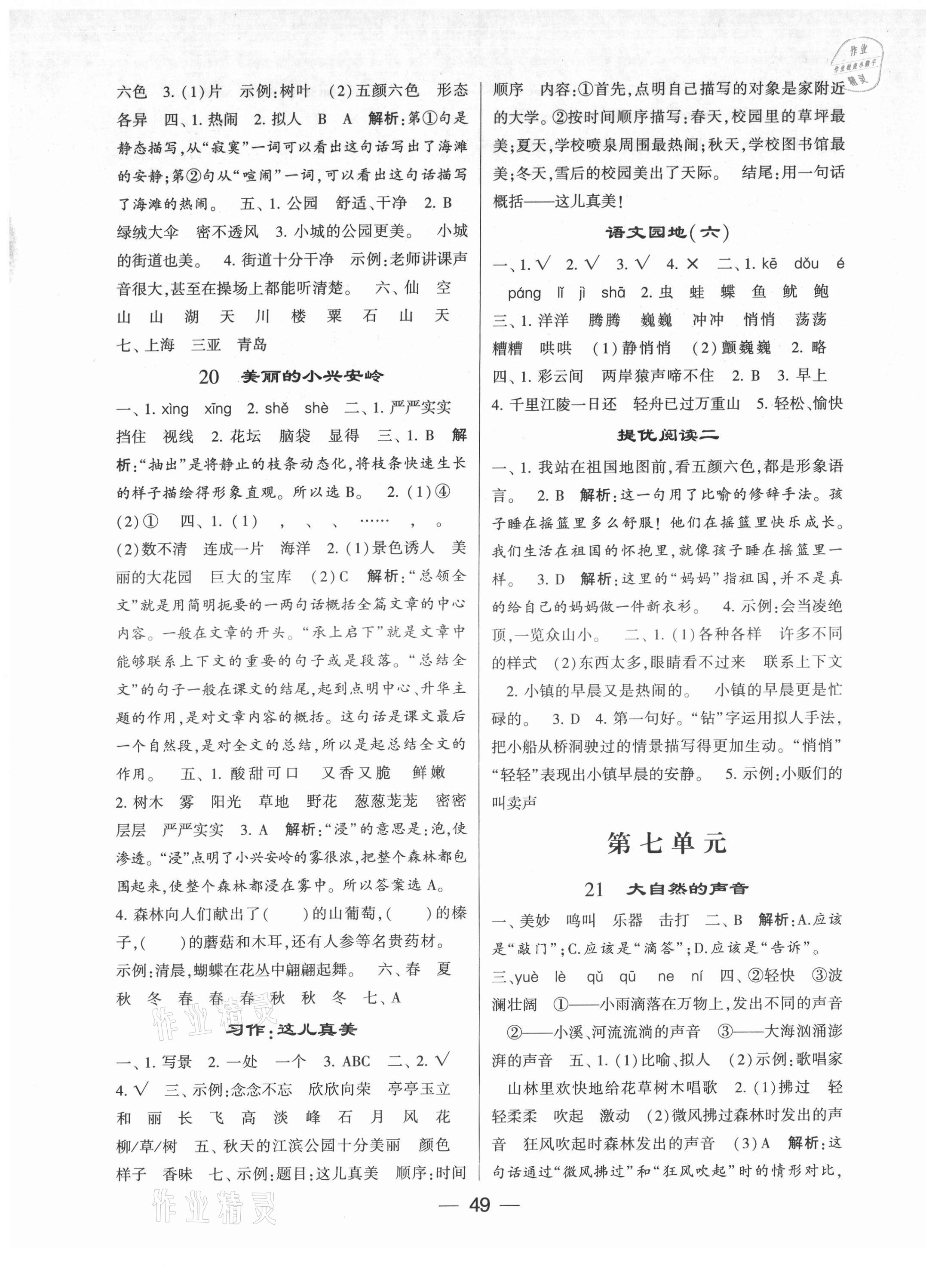 注:目前有些书本章节名称可能整理的还不是很完善,但都是按照顺序排列的,请同学们按照顺序仔细查找。练习册 2021年棒棒堂学霸提优课时作业三年级语文上册人教版江苏专版 答案主要是用来给同学们做完题方便对答案用的,请勿直接抄袭。