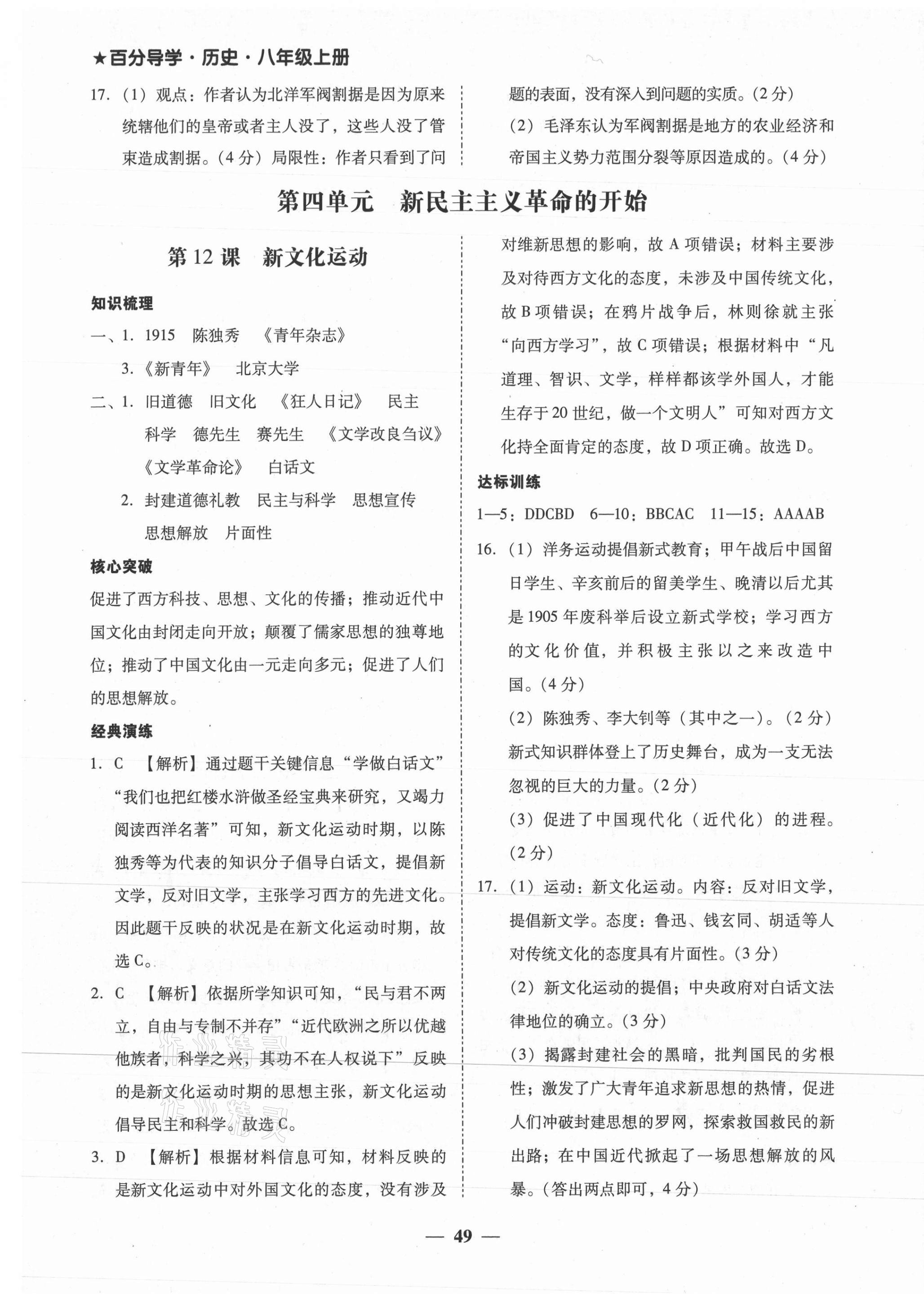 注:目前有些书本章节名称可能整理的还不是很完善,但都是按照顺序排列的,请同学们按照顺序仔细查找。练习册 2021年百分导学八年级历史上册人教版 答案主要是用来给同学们做完题方便对答案用的,请勿直接抄袭。