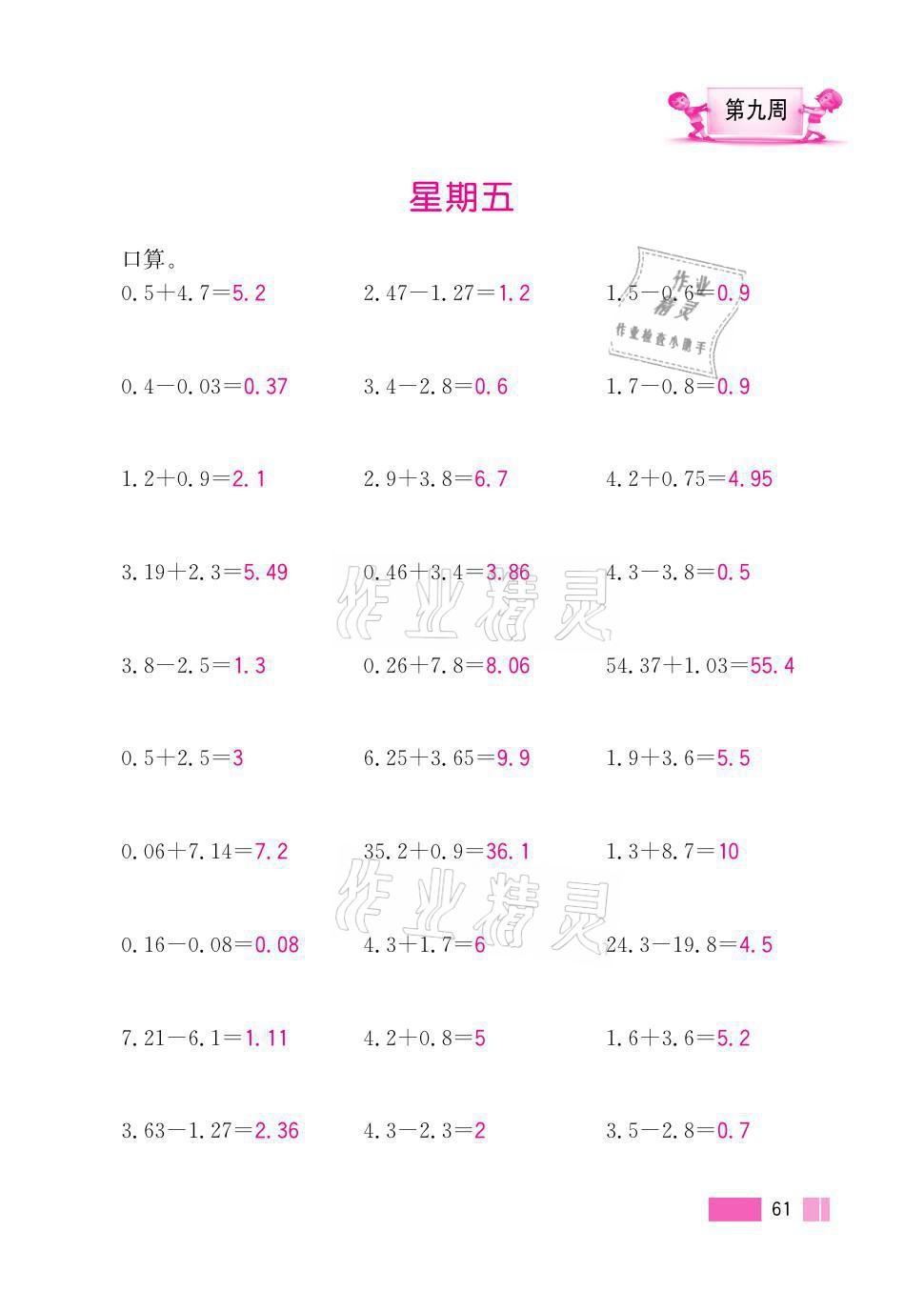 2021年超能学典小学数学计算高手五年级上册江苏版
