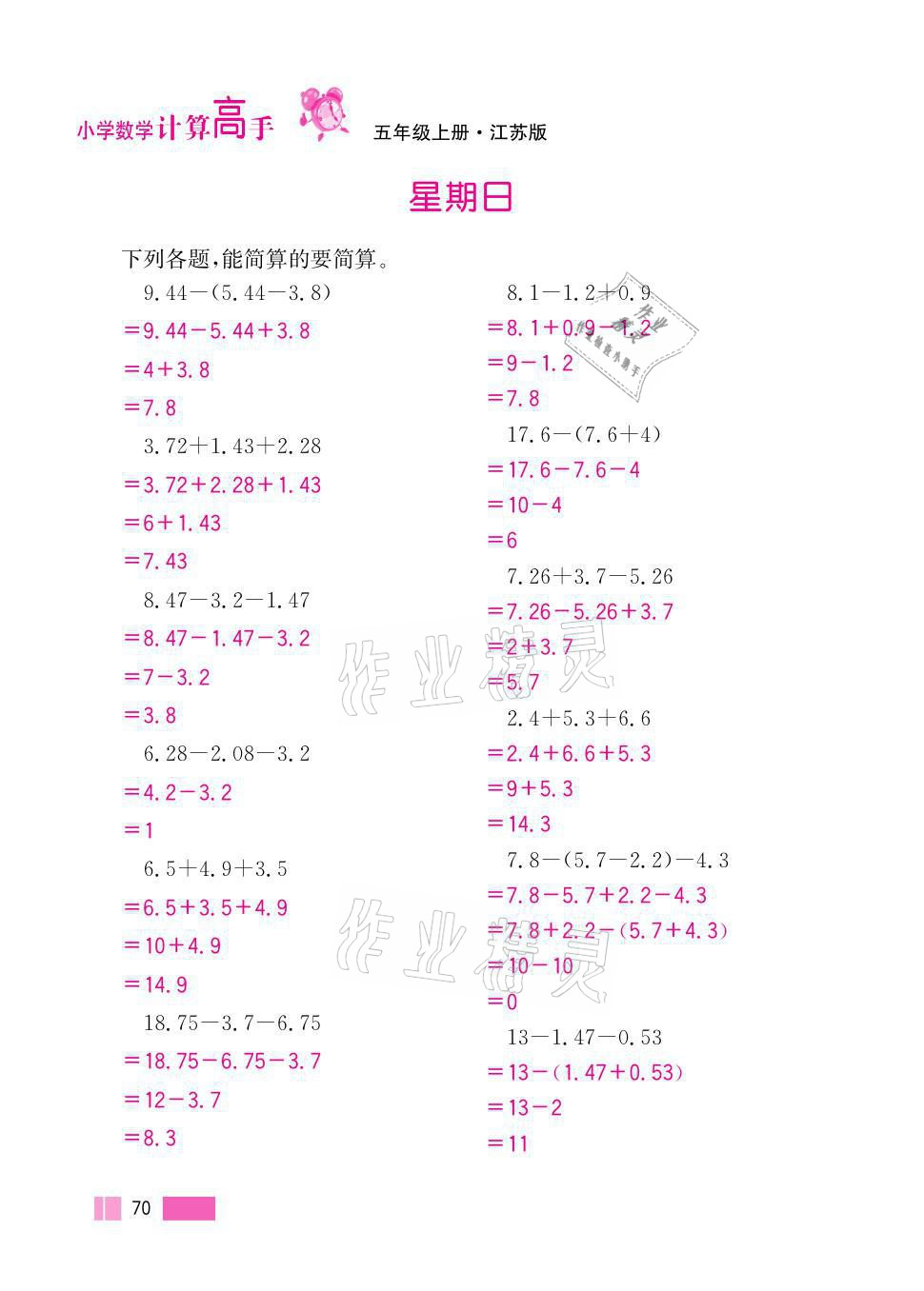 《2021年超能学典小学数学计算高手五年级上册江苏版》