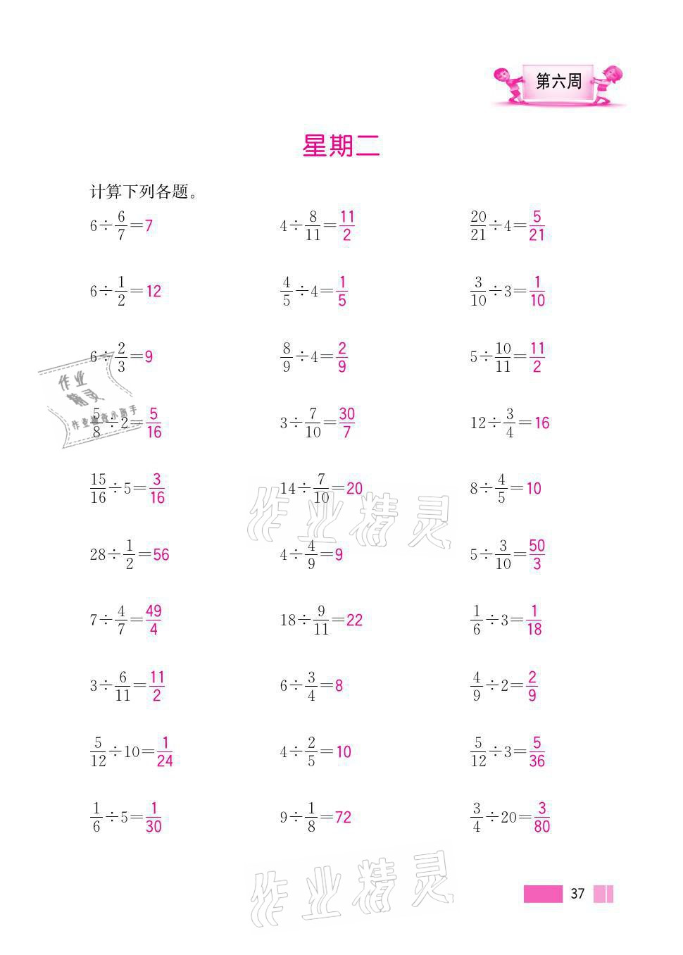 2021年超能学典小学数学计算高手六年级上册江苏版