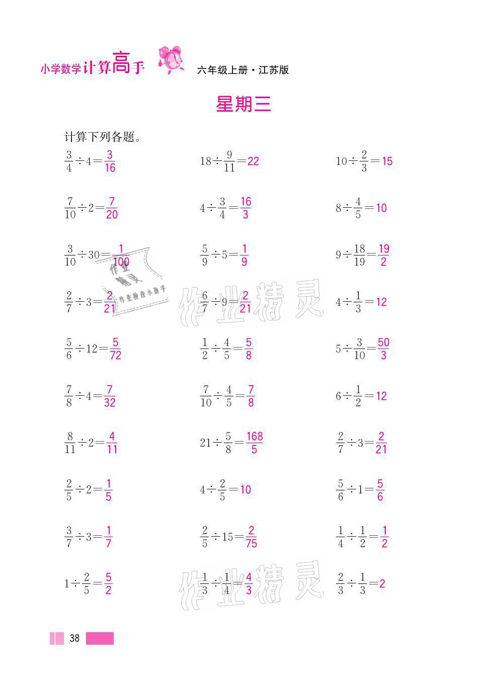 注:目前有些书本章节名称可能整理的还不是很完善,但都是按照顺序排列的,请同学们按照顺序仔细查找。练习册 2021年超能学典小学数学计算高手六年级上册江苏版 答案主要是用来给同学们做完题方便对答案用的,请勿直接抄袭。
