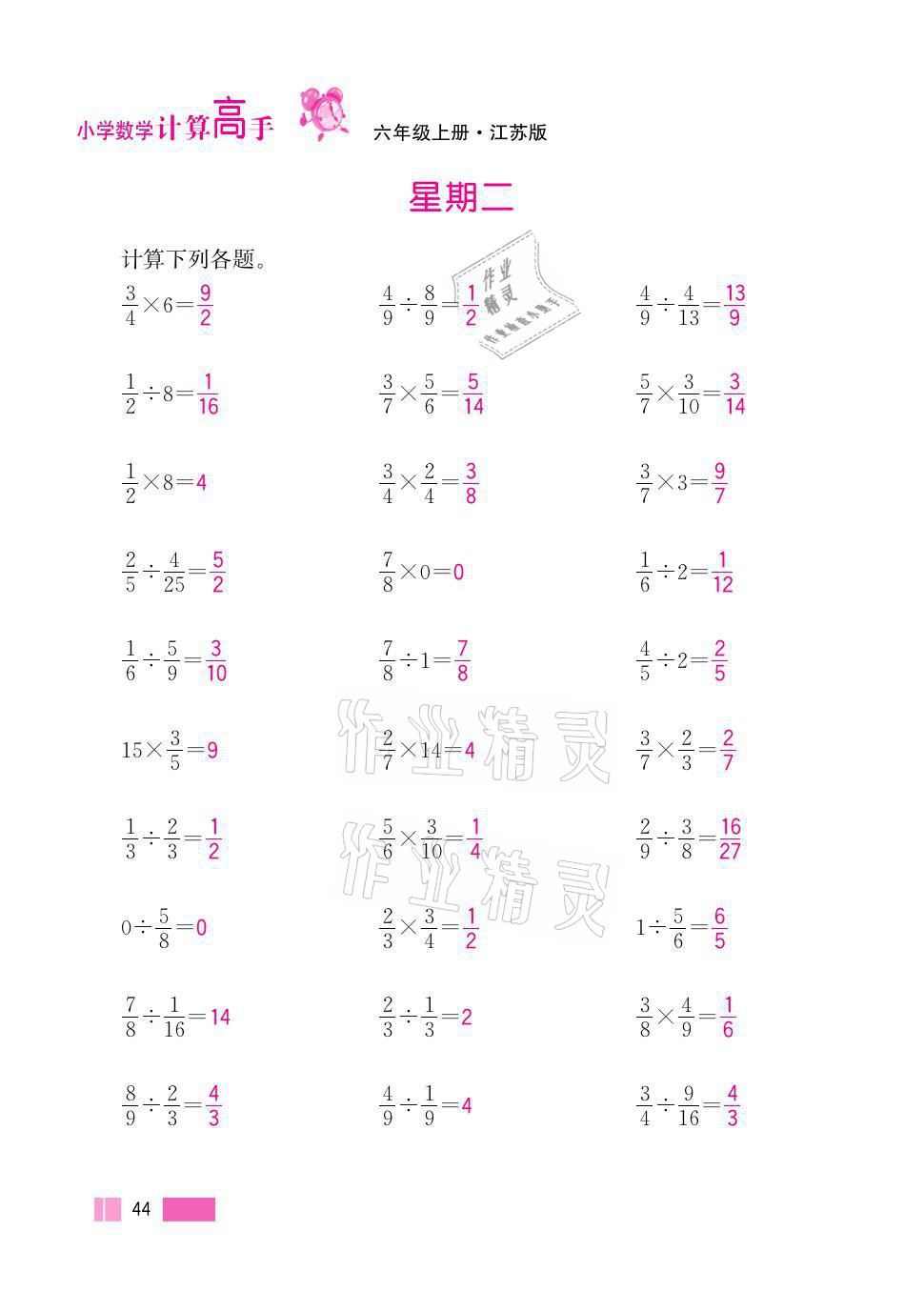 注:目前有些书本章节名称可能整理的还不是很完善,但都是按照顺序排列的,请同学们按照顺序仔细查找。练习册 2021年超能学典小学数学计算高手六年级上册江苏版 答案主要是用来给同学们做完题方便对答案用的,请勿直接抄袭。