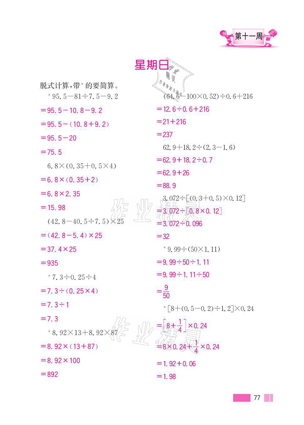 2021年超能学典小学数学计算高手六年级上册江苏版