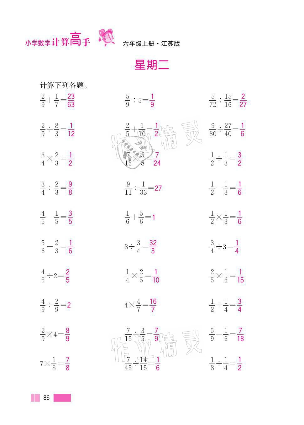 2021年超能学典小学数学计算高手六年级上册江苏版