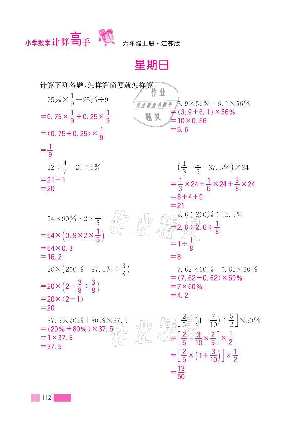 2021年超能学典小学数学计算高手六年级上册江苏版
