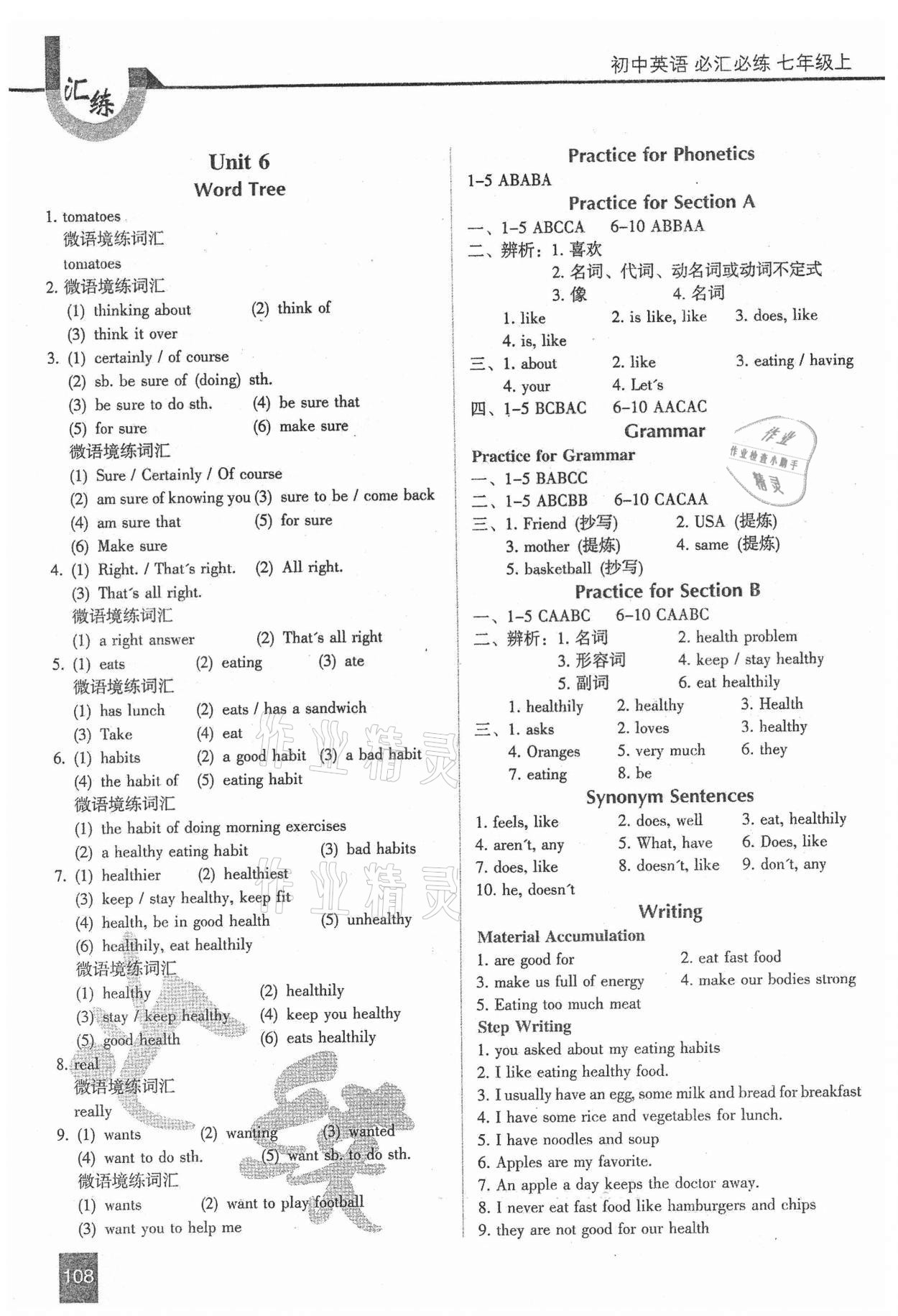 注:目前有些书本章节名称可能整理的还不是很完善,但都是按照顺序排列的,请同学们按照顺序仔细查找。练习册 2021年汇练七年级英语上册人教版 答案主要是用来给同学们做完题方便对答案用的,请勿直接抄袭。