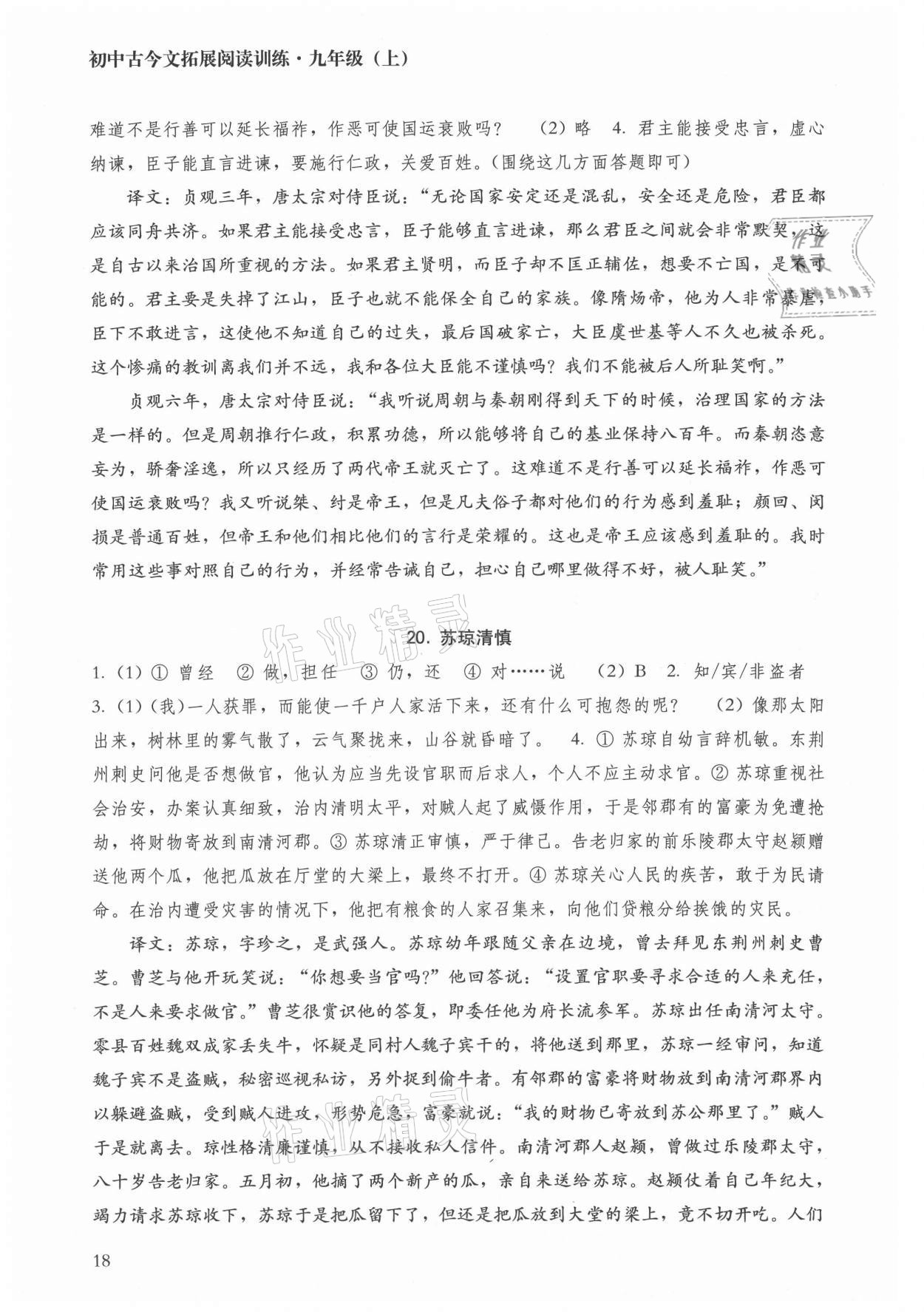 注:目前有些书本章节名称可能整理的还不是很完善,但都是按照顺序排列的,请同学们按照顺序仔细查找。练习册 2021年初中古今文拓展阅读训练九年级上册 答案主要是用来给同学们做完题方便对答案用的,请勿直接抄袭。