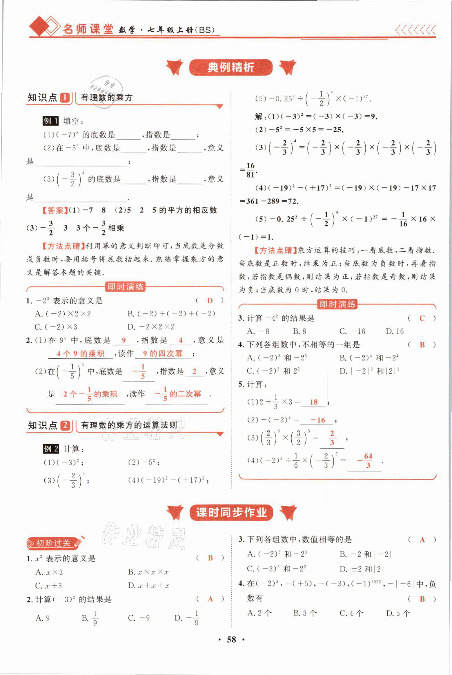 2021年名师课堂南方出版社七年级数学上册北师大版