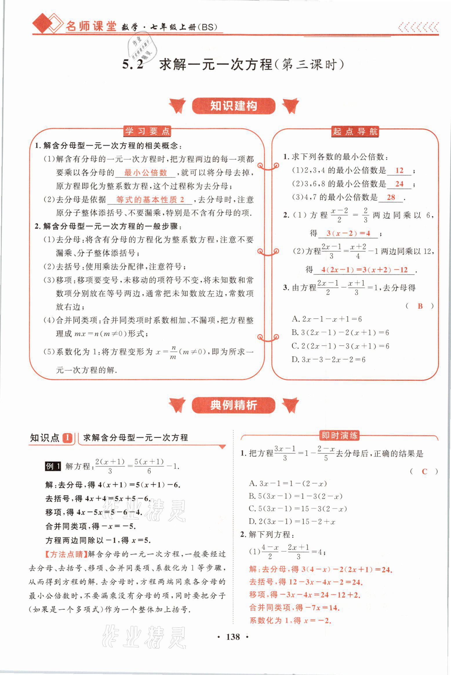 注:目前有些书本章节名称可能整理的还不是很完善,但都是按照顺序排列的,请同学们按照顺序仔细查找。练习册 2021年名师课堂南方出版社七年级数学上册北师大版 答案主要是用来给同学们做完题方便对答案用的,请勿直接抄袭。