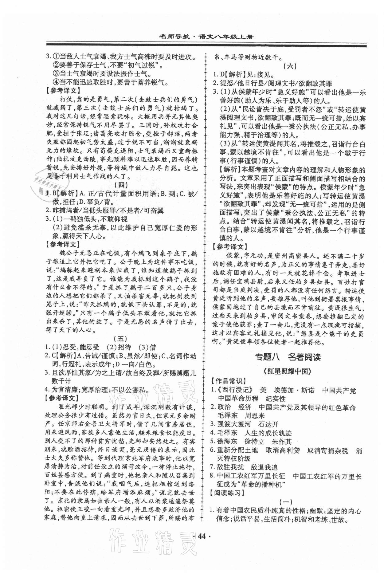注:目前有些书本章节名称可能整理的还不是很完善,但都是按照顺序排列的,请同学们按照顺序仔细查找。练习册 2021年名师导航同步练与测八年级语文上册人教版广东专版 答案主要是用来给同学们做完题方便对答案用的,请勿直接抄袭。