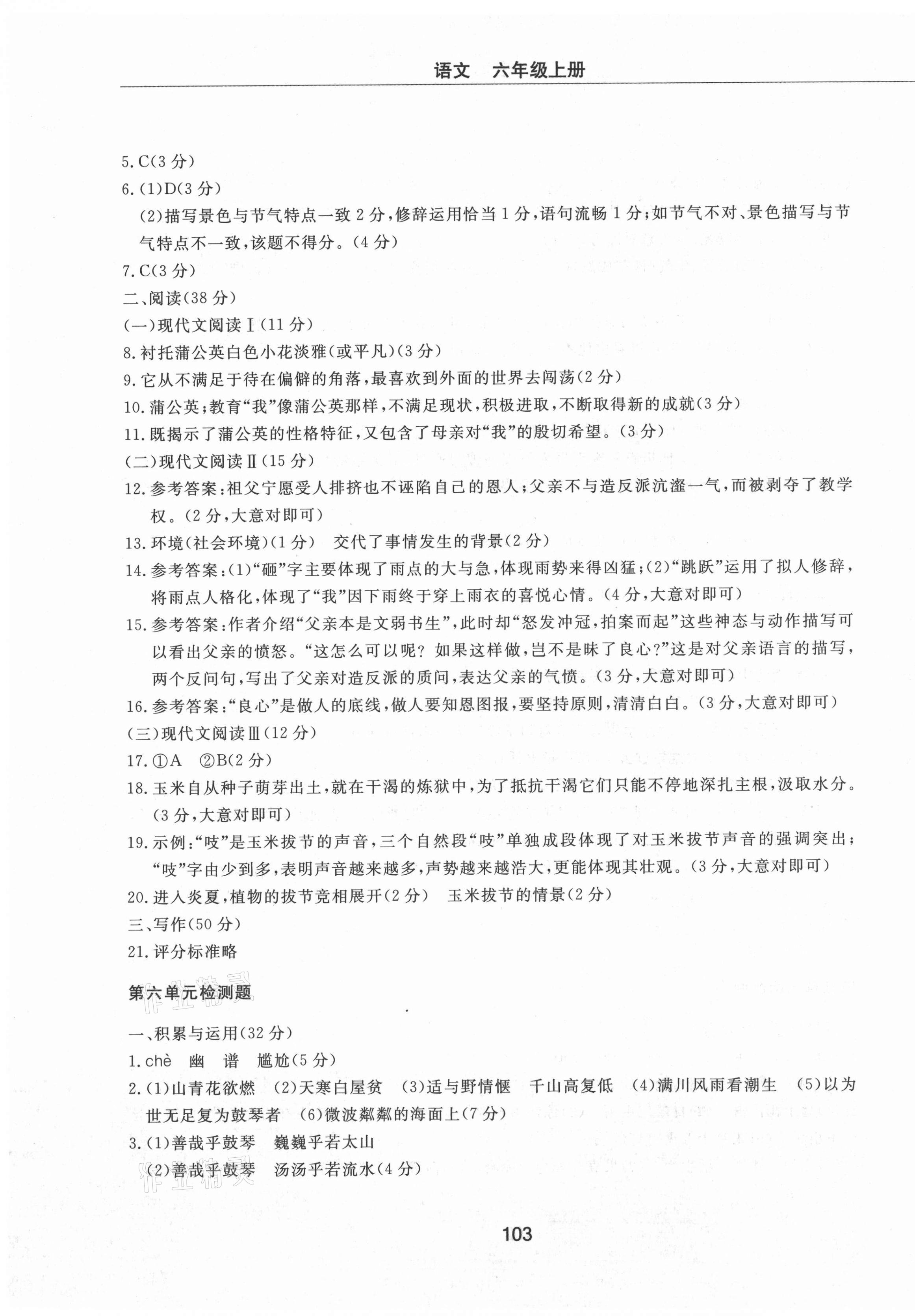 注:目前有些书本章节名称可能整理的还不是很完善,但都是按照顺序排列的,请同学们按照顺序仔细查找。练习册 2021年同步练习册配套检测卷六年级语文上册人教版烟台专版54制 答案主要是用来给同学们做完题方便对答案用的,请勿直接抄袭。