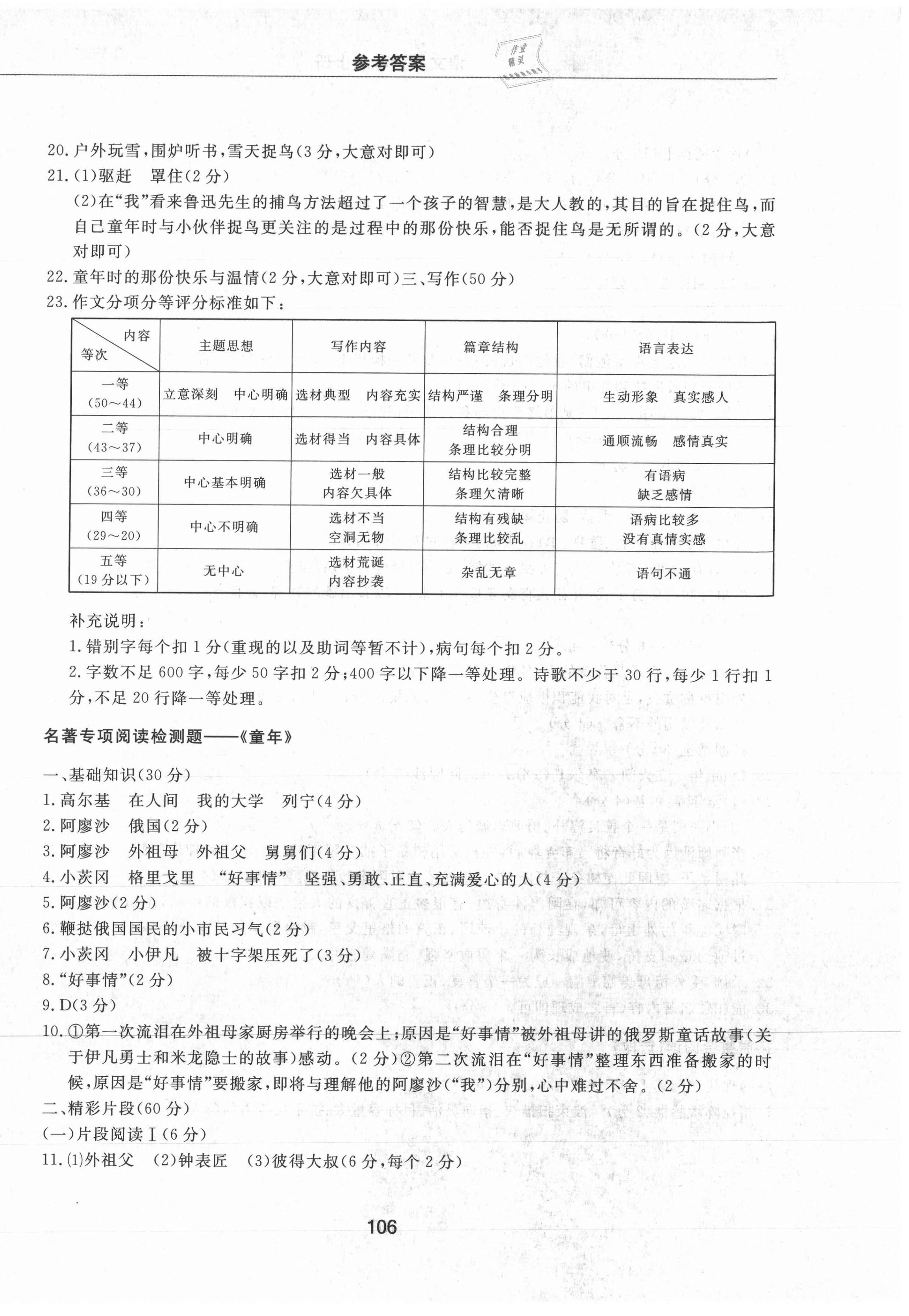 《2021年同步练习册配套检测卷六年级语文上册人教版烟台专版54制》