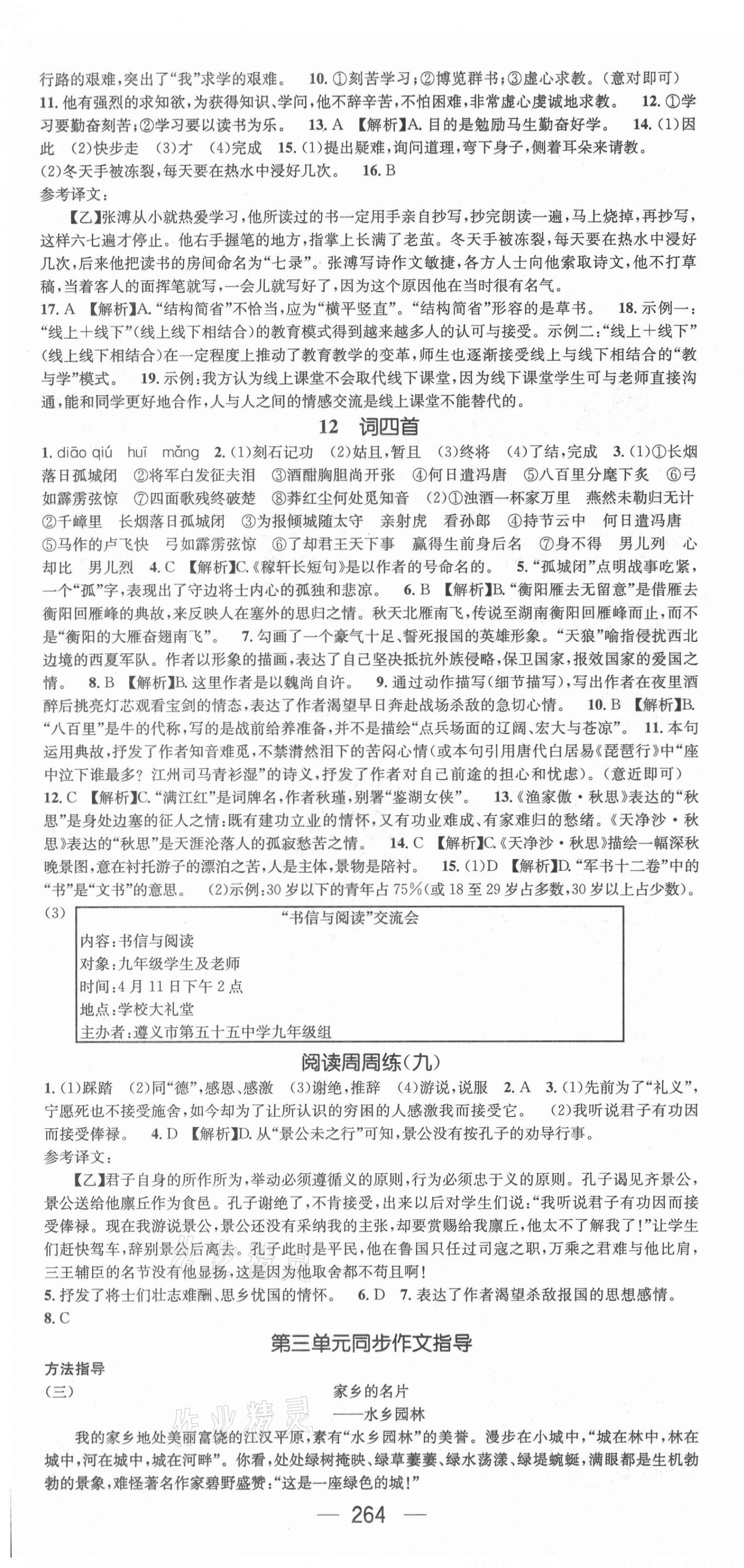 注:目前有些书本章节名称可能整理的还不是很完善,但都是按照顺序排列的,请同学们按照顺序仔细查找。练习册 2021年名师测控九年级语文全一册人教版Ⅰ遵义专版 答案主要是用来给同学们做完题方便对答案用的,请勿直接抄袭。