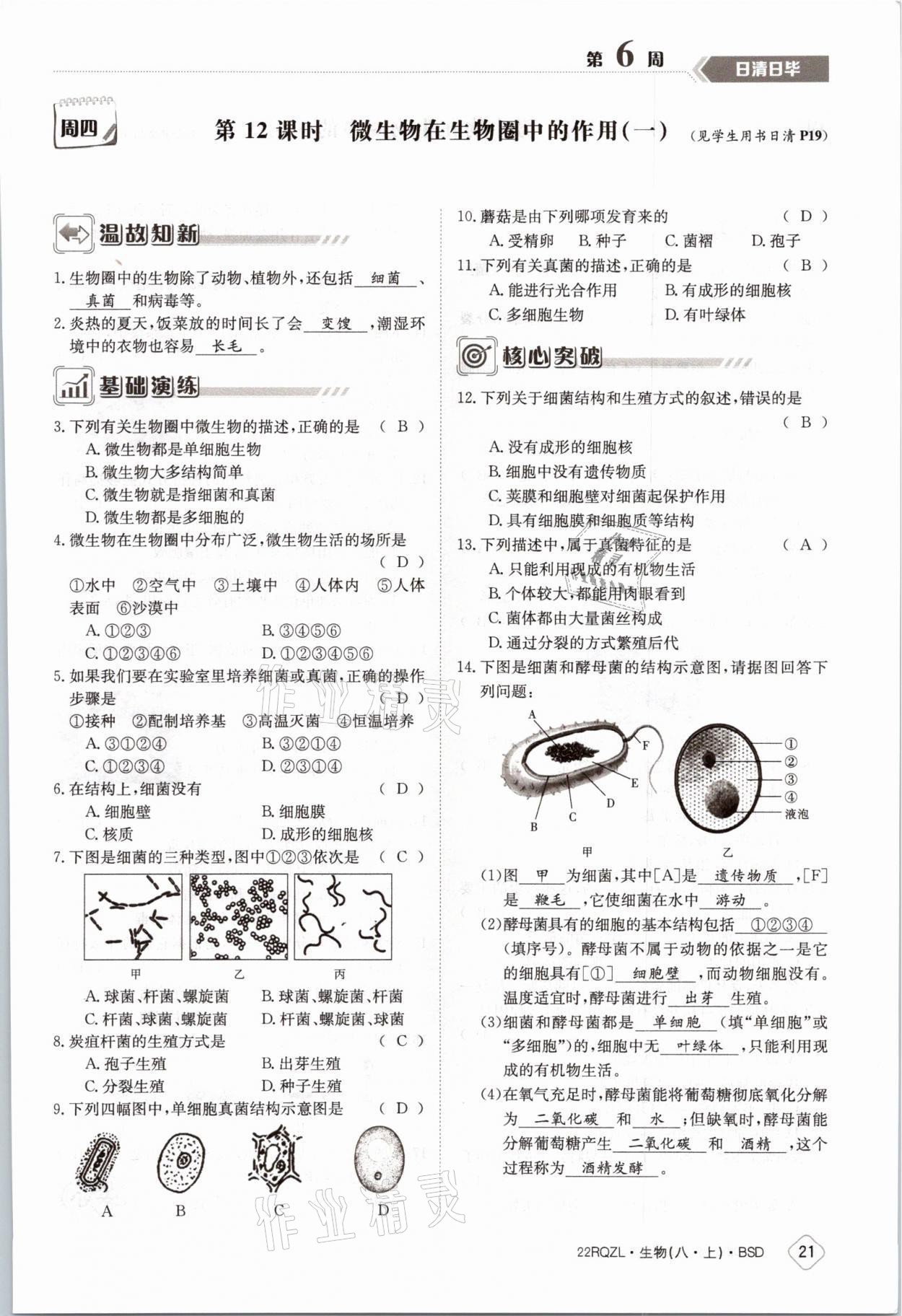 注:目前有些书本章节名称可能整理的还不是很完善,但都是按照顺序排列的,请同学们按照顺序仔细查找。练习册 2021年日清周练八年级生物上册北师大版 答案主要是用来给同学们做完题方便对答案用的,请勿直接抄袭。