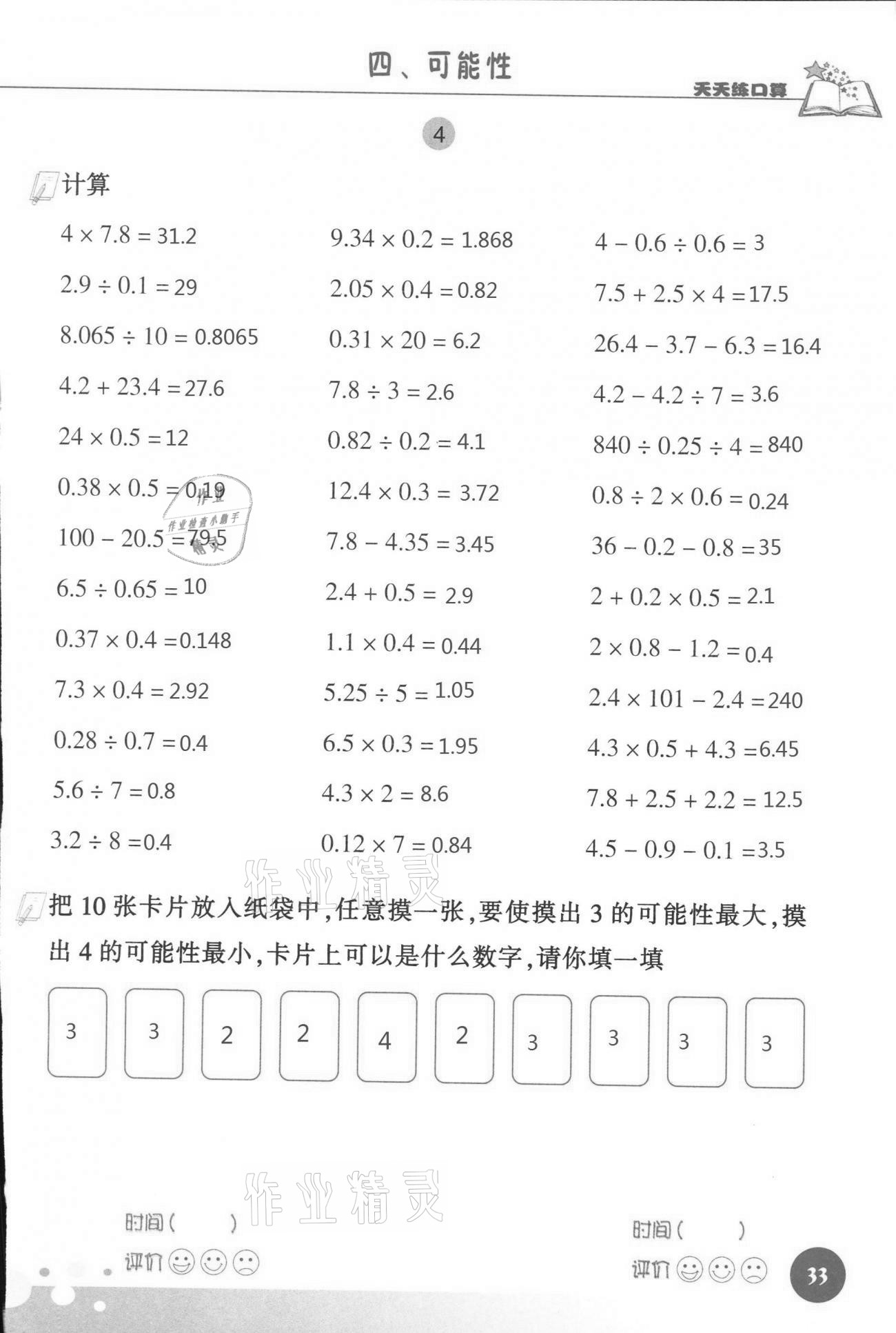 《2021年天天练口算五年级数学上册人教版》