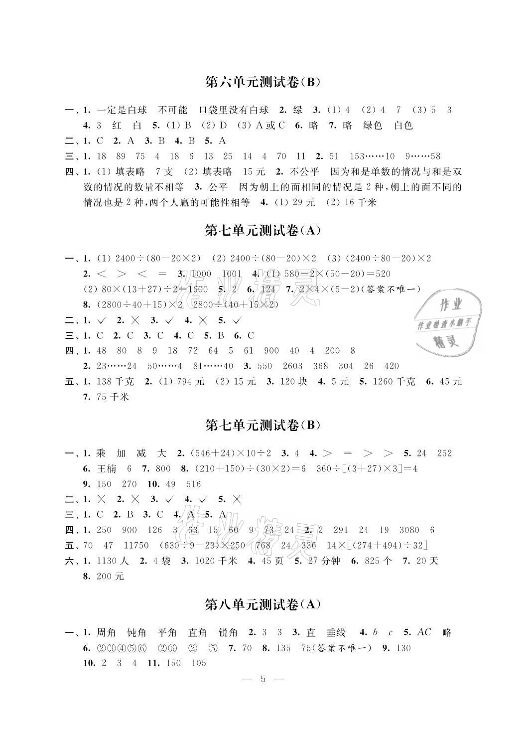 注:目前有些书本章节名称可能整理的还不是很完善,但都是按照顺序排列的,请同学们按照顺序仔细查找。练习册 2021年小学测控优化练习单元测试卷四年级数学上册苏教版 答案主要是用来给同学们做完题方便对答案用的,请勿直接抄袭。
