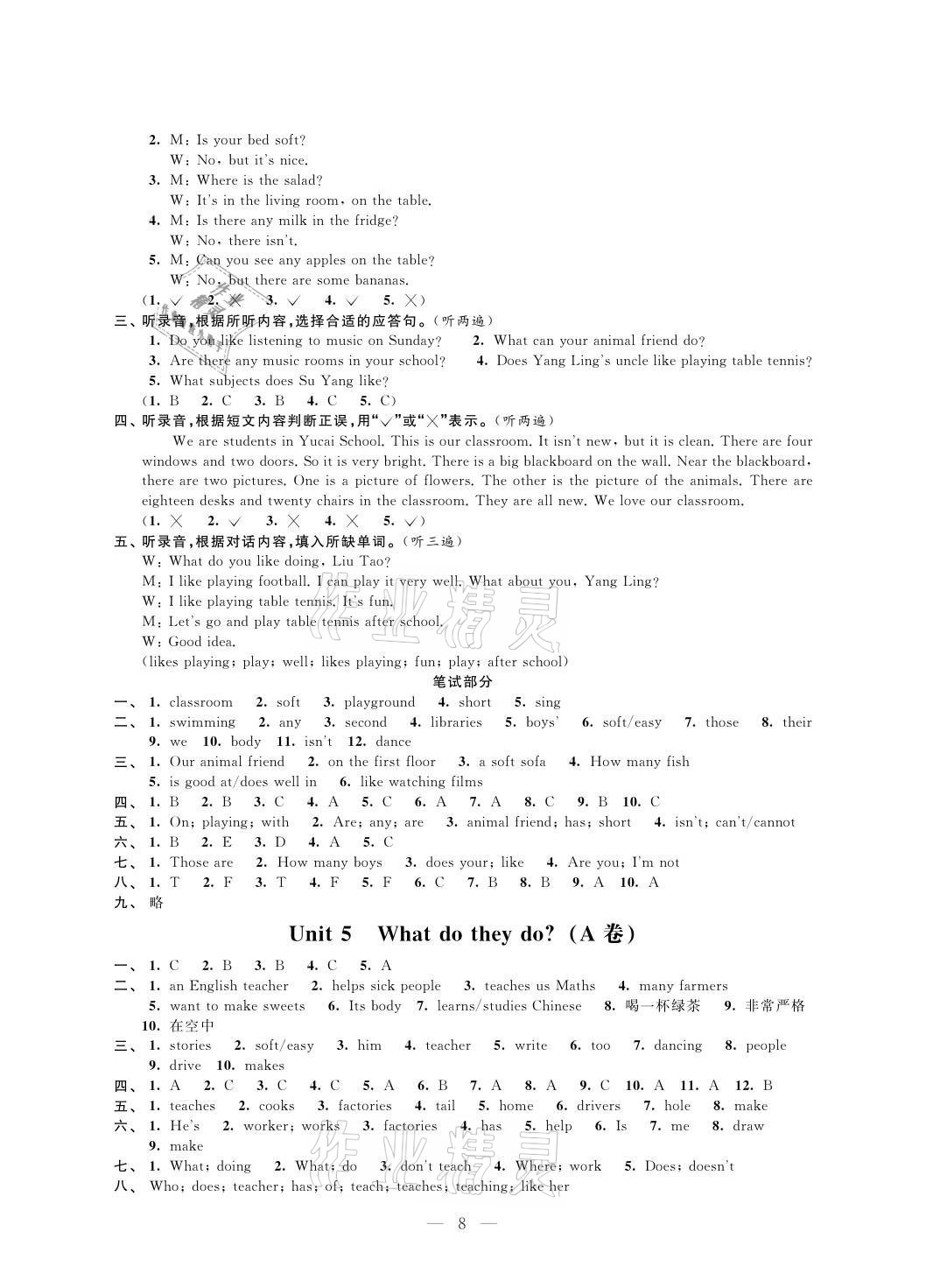 注:目前有些书本章节名称可能整理的还不是很完善,但都是按照顺序排列的,请同学们按照顺序仔细查找。练习册 2021年小学测控优化练习单元测试卷五年级英语上册译林版 答案主要是用来给同学们做完题方便对答案用的,请勿直接抄袭。