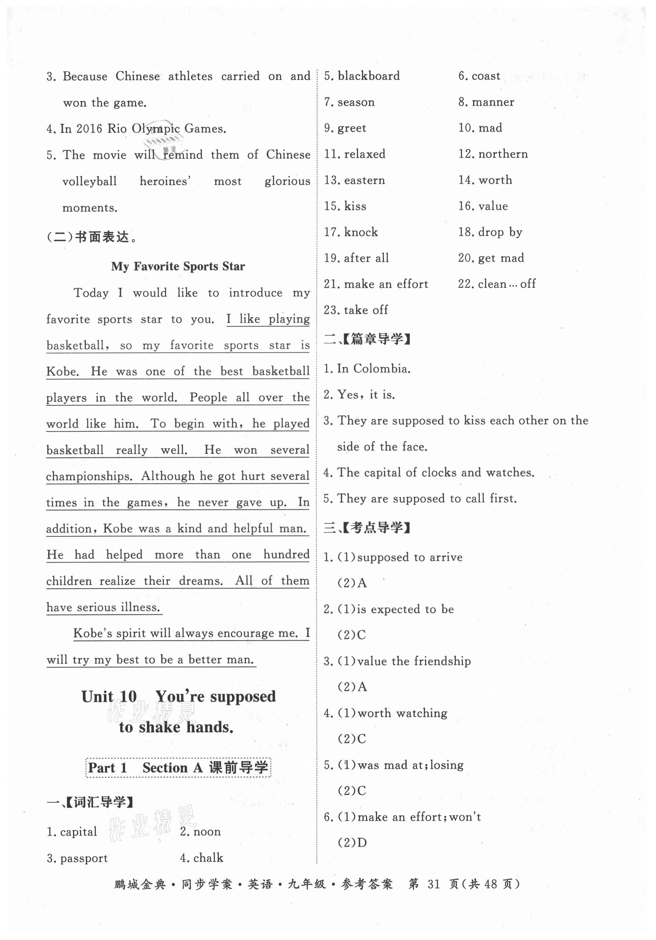 注:目前有些书本章节名称可能整理的还不是很完善,但都是按照顺序排列的,请同学们按照顺序仔细查找。练习册 2021年名师帮同步学案九年级英语全一册人教版广东专版 答案主要是用来给同学们做完题方便对答案用的,请勿直接抄袭。