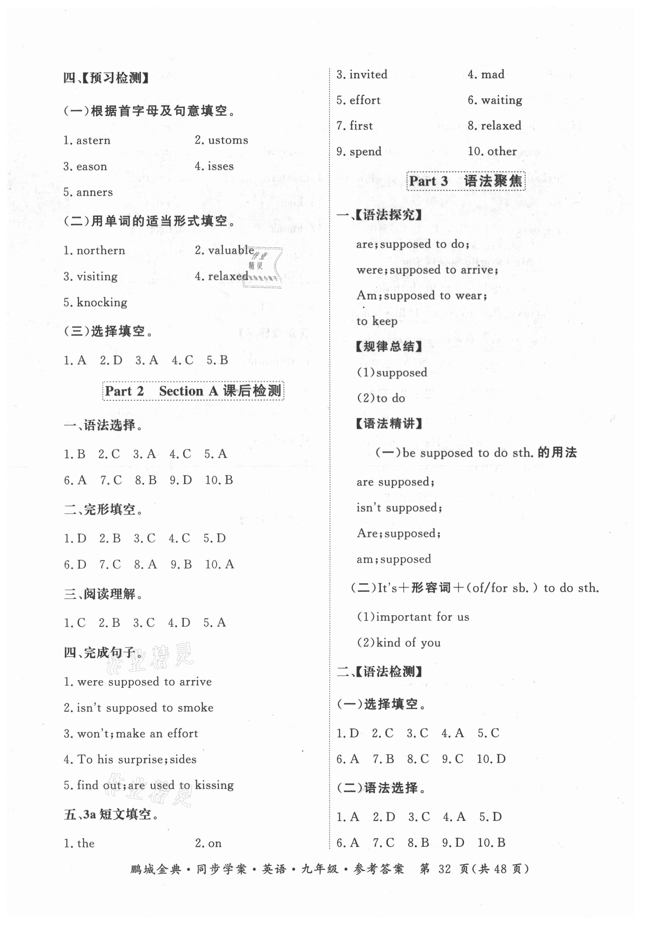 注:目前有些书本章节名称可能整理的还不是很完善,但都是按照顺序排列的,请同学们按照顺序仔细查找。练习册 2021年名师帮同步学案九年级英语全一册人教版广东专版 答案主要是用来给同学们做完题方便对答案用的,请勿直接抄袭。