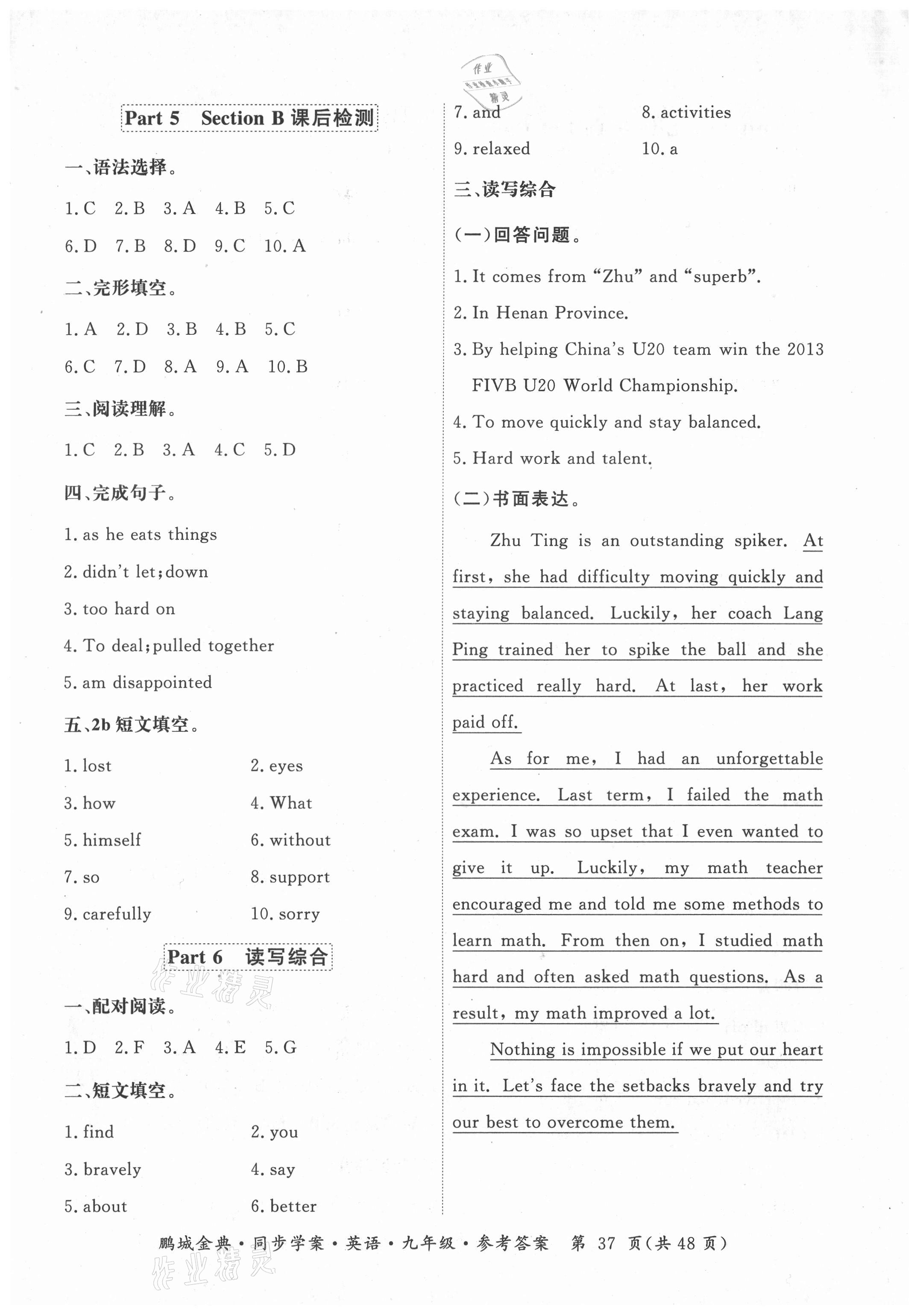 注:目前有些书本章节名称可能整理的还不是很完善,但都是按照顺序排列的,请同学们按照顺序仔细查找。练习册 2021年名师帮同步学案九年级英语全一册人教版广东专版 答案主要是用来给同学们做完题方便对答案用的,请勿直接抄袭。