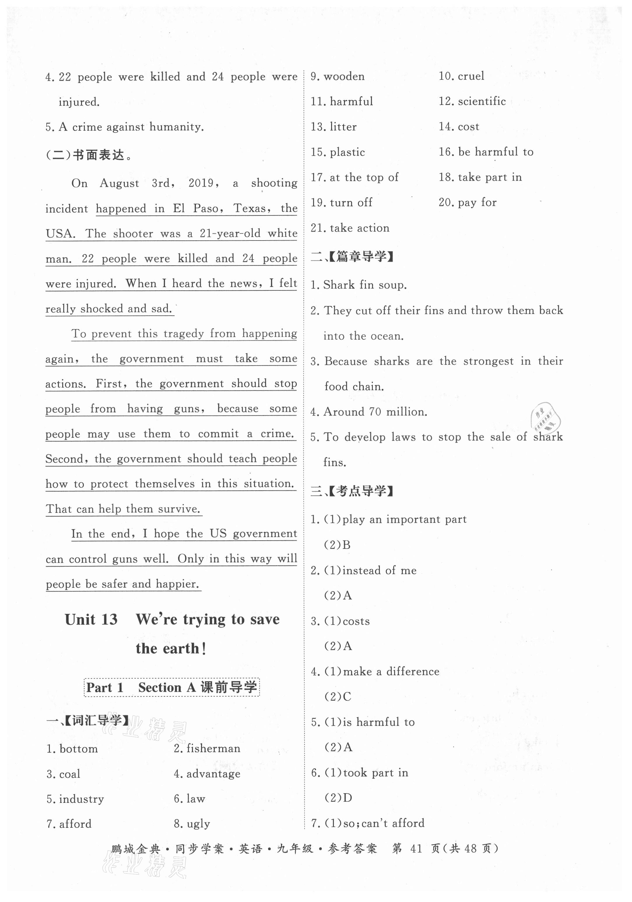 注:目前有些书本章节名称可能整理的还不是很完善,但都是按照顺序排列的,请同学们按照顺序仔细查找。练习册 2021年名师帮同步学案九年级英语全一册人教版广东专版 答案主要是用来给同学们做完题方便对答案用的,请勿直接抄袭。