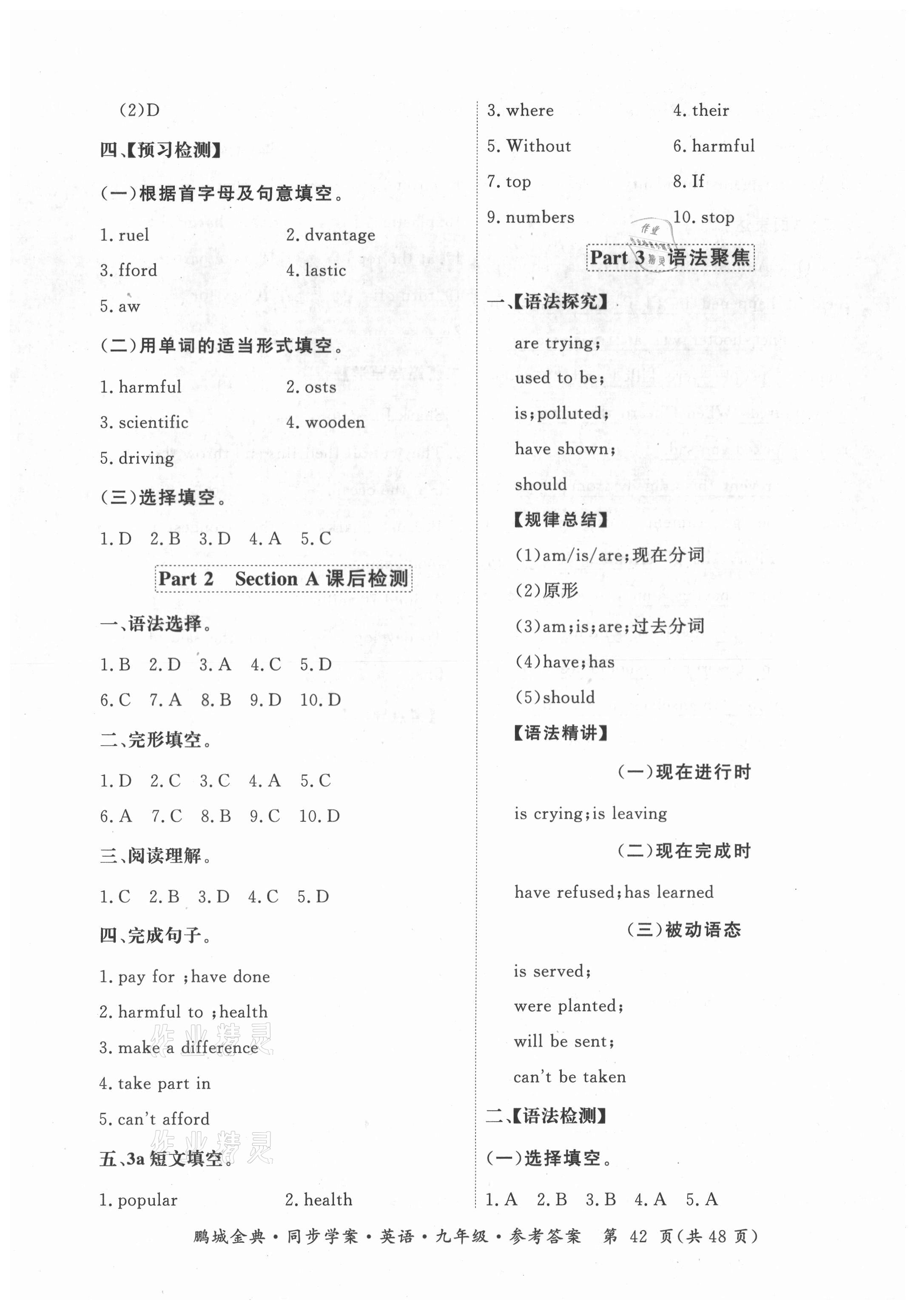 注:目前有些书本章节名称可能整理的还不是很完善,但都是按照顺序排列的,请同学们按照顺序仔细查找。练习册 2021年名师帮同步学案九年级英语全一册人教版广东专版 答案主要是用来给同学们做完题方便对答案用的,请勿直接抄袭。