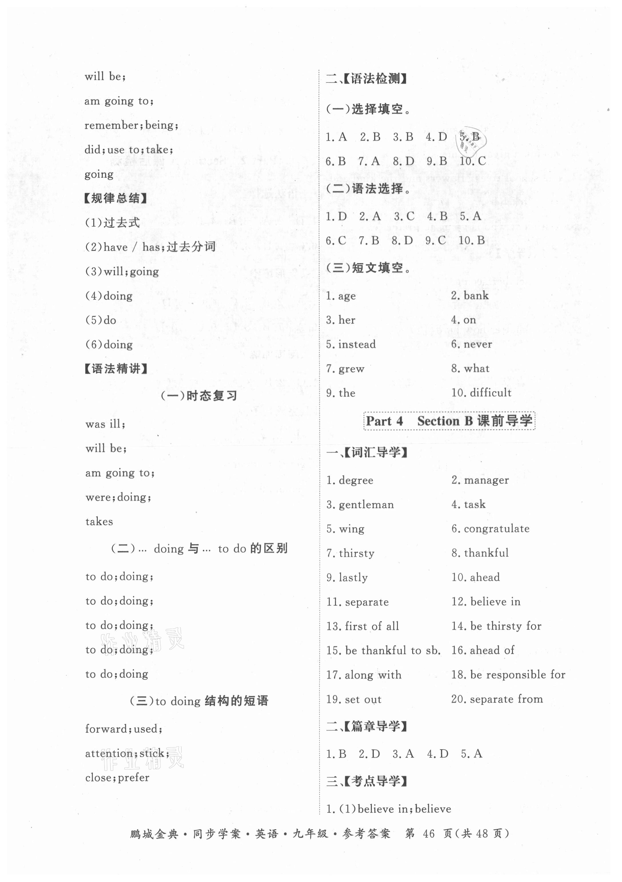 注:目前有些书本章节名称可能整理的还不是很完善,但都是按照顺序排列的,请同学们按照顺序仔细查找。练习册 2021年名师帮同步学案九年级英语全一册人教版广东专版 答案主要是用来给同学们做完题方便对答案用的,请勿直接抄袭。