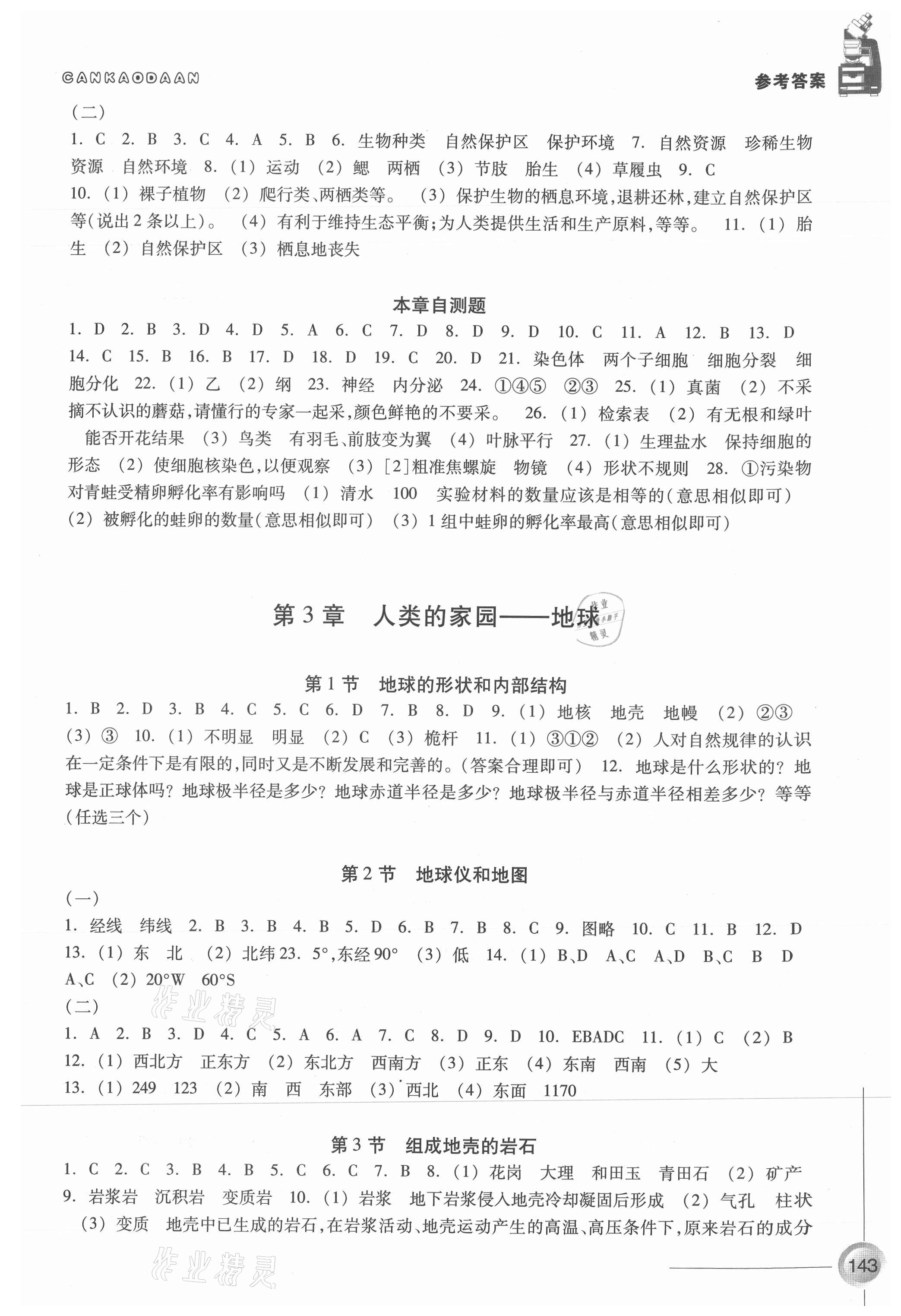 注:目前有些书本章节名称可能整理的还不是很完善,但都是按照顺序排列的,请同学们按照顺序仔细查找。练习册 2021年同步练习浙江教育出版社七年级科学上册浙教版 答案主要是用来给同学们做完题方便对答案用的,请勿直接抄袭。