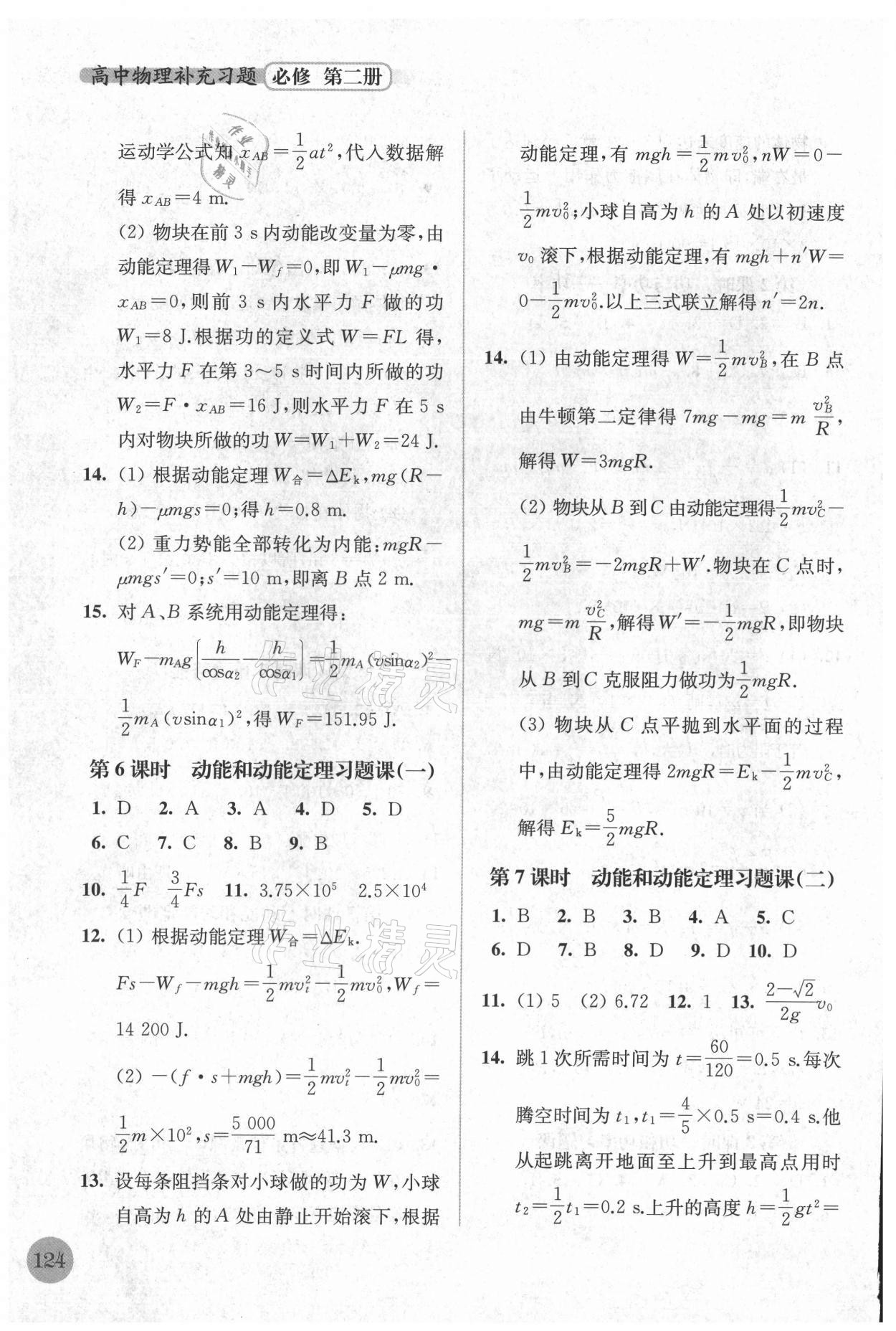2021年高中物理补充习题必修第二册