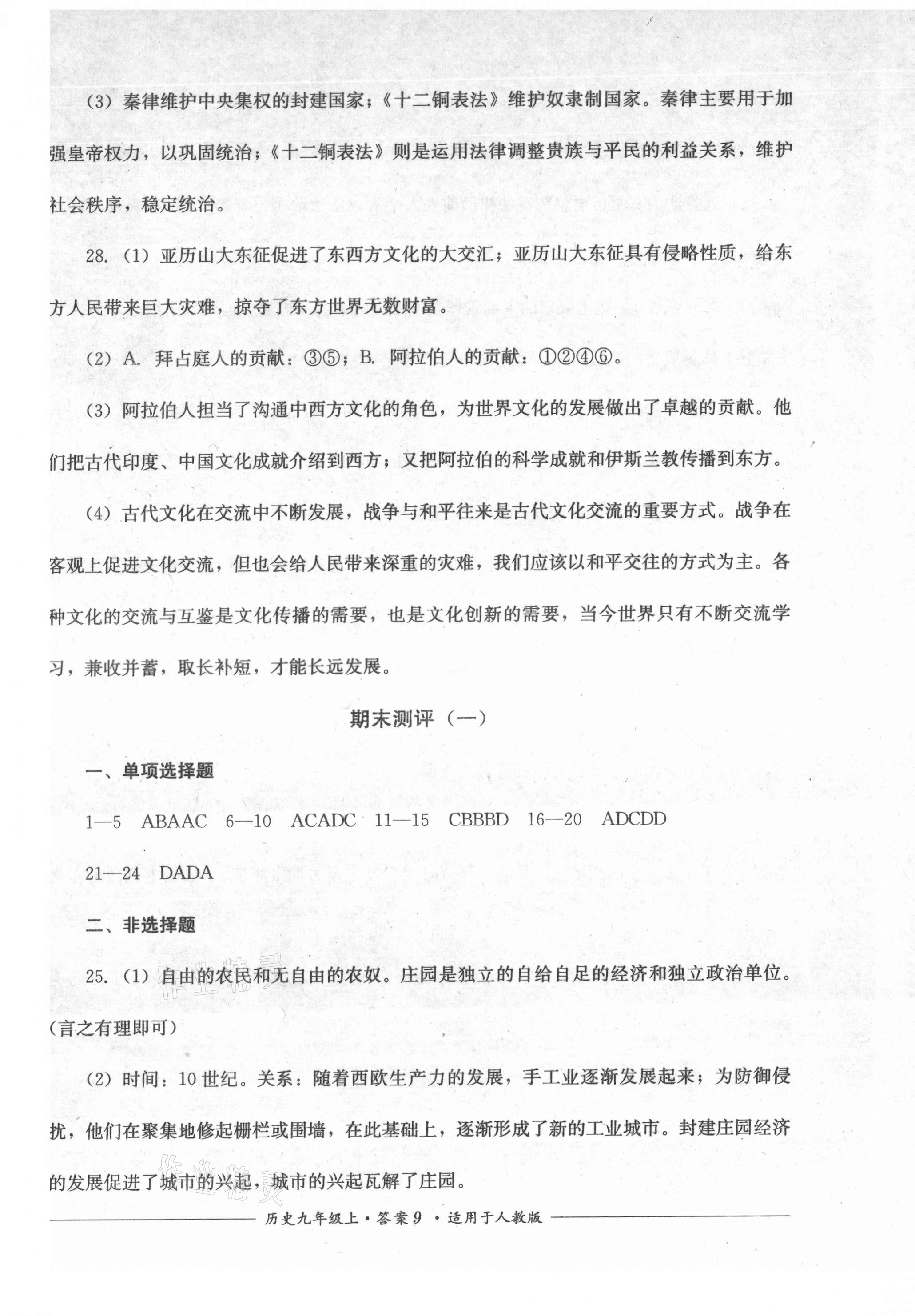 注:目前有些书本章节名称可能整理的还不是很完善,但都是按照顺序排列的,请同学们按照顺序仔细查找。练习册 2021年单元测评九年级历史上册人教版四川教育出版社 答案主要是用来给同学们做完题方便对答案用的,请勿直接抄袭。
