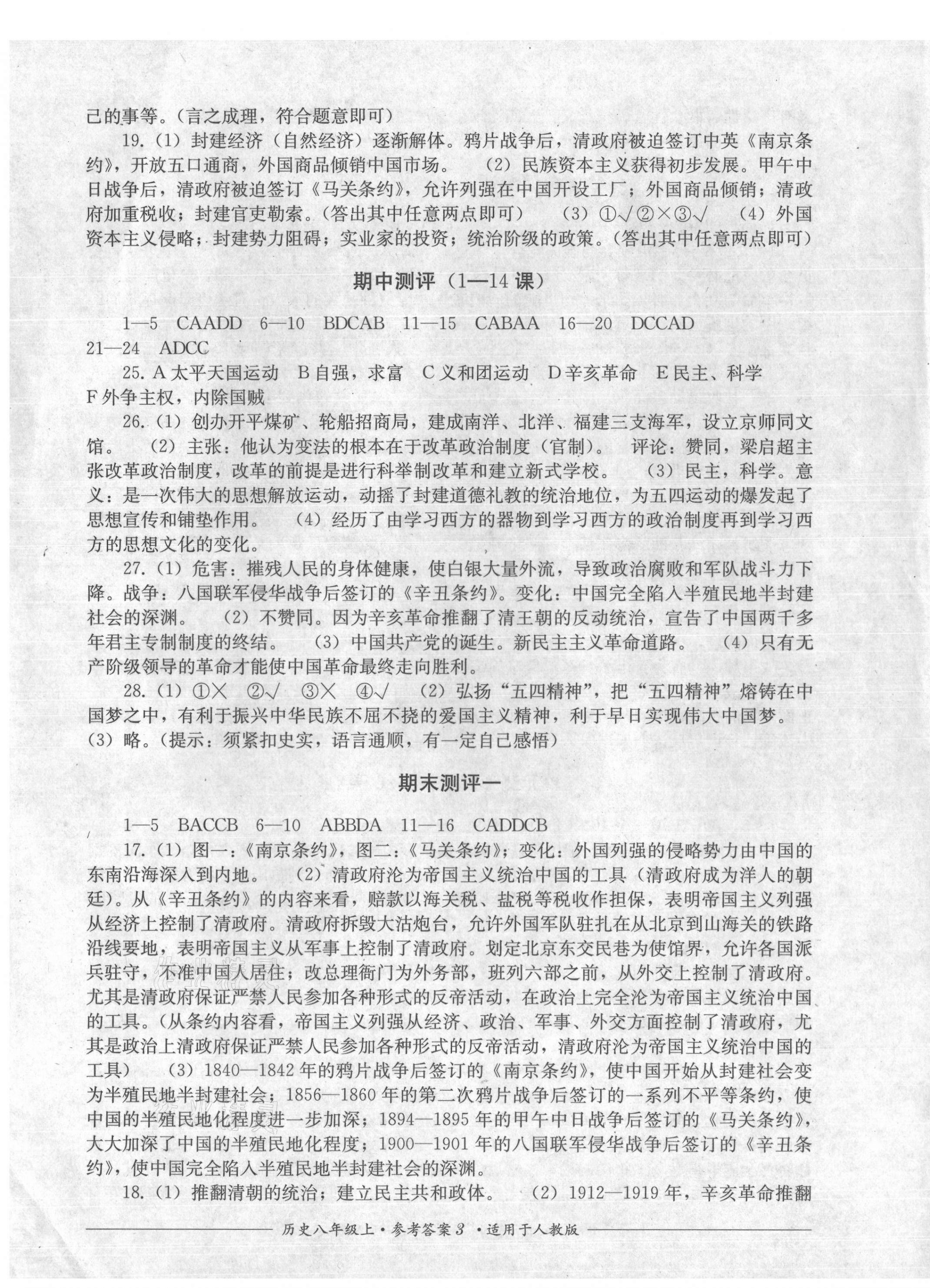 2021年单元测评八年级历史上册人教版四川教育出版社