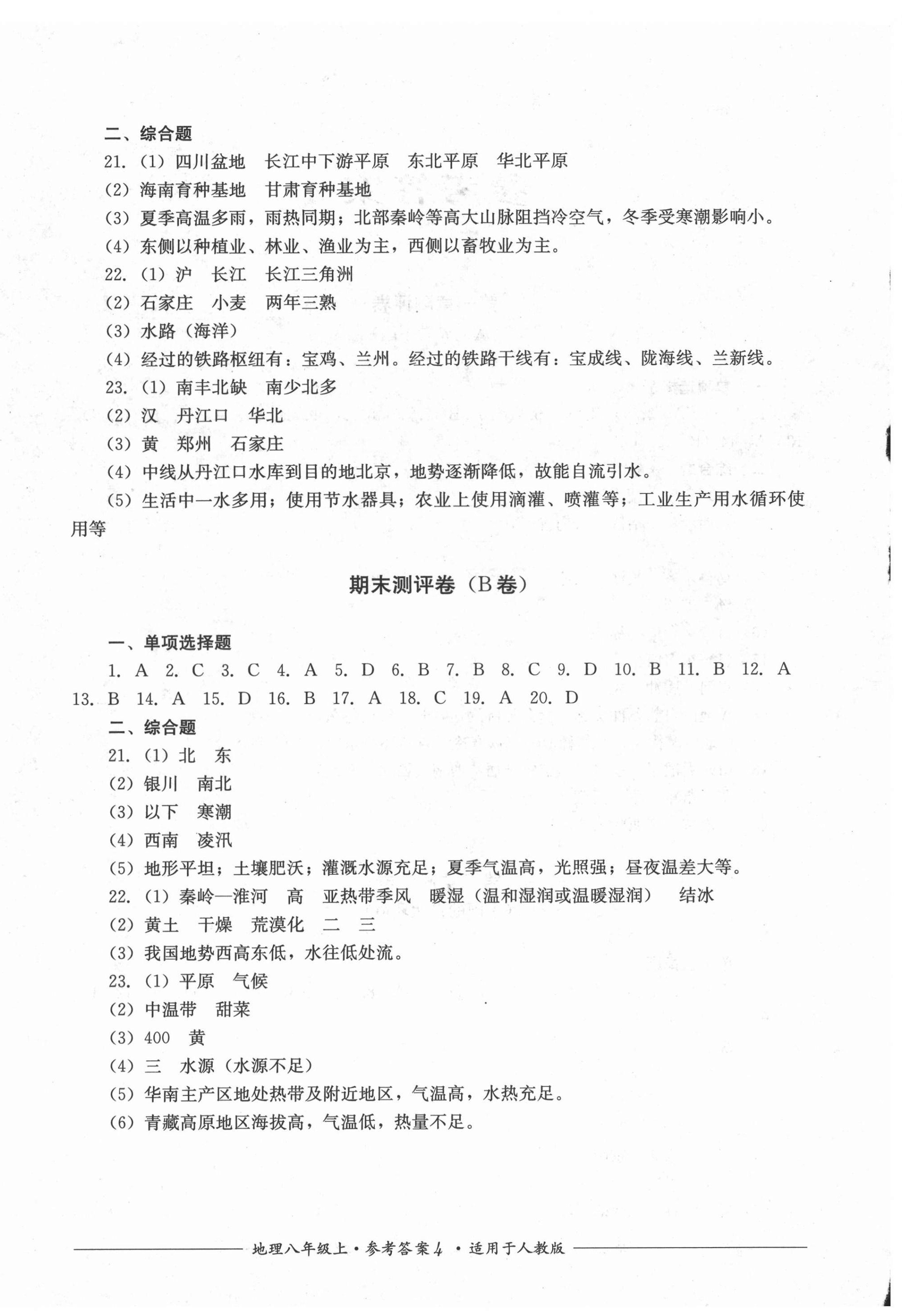 注:目前有些书本章节名称可能整理的还不是很完善,但都是按照顺序排列的,请同学们按照顺序仔细查找。练习册 2021年单元测评八年级地理上册人教版四川教育出版社 答案主要是用来给同学们做完题方便对答案用的,请勿直接抄袭。