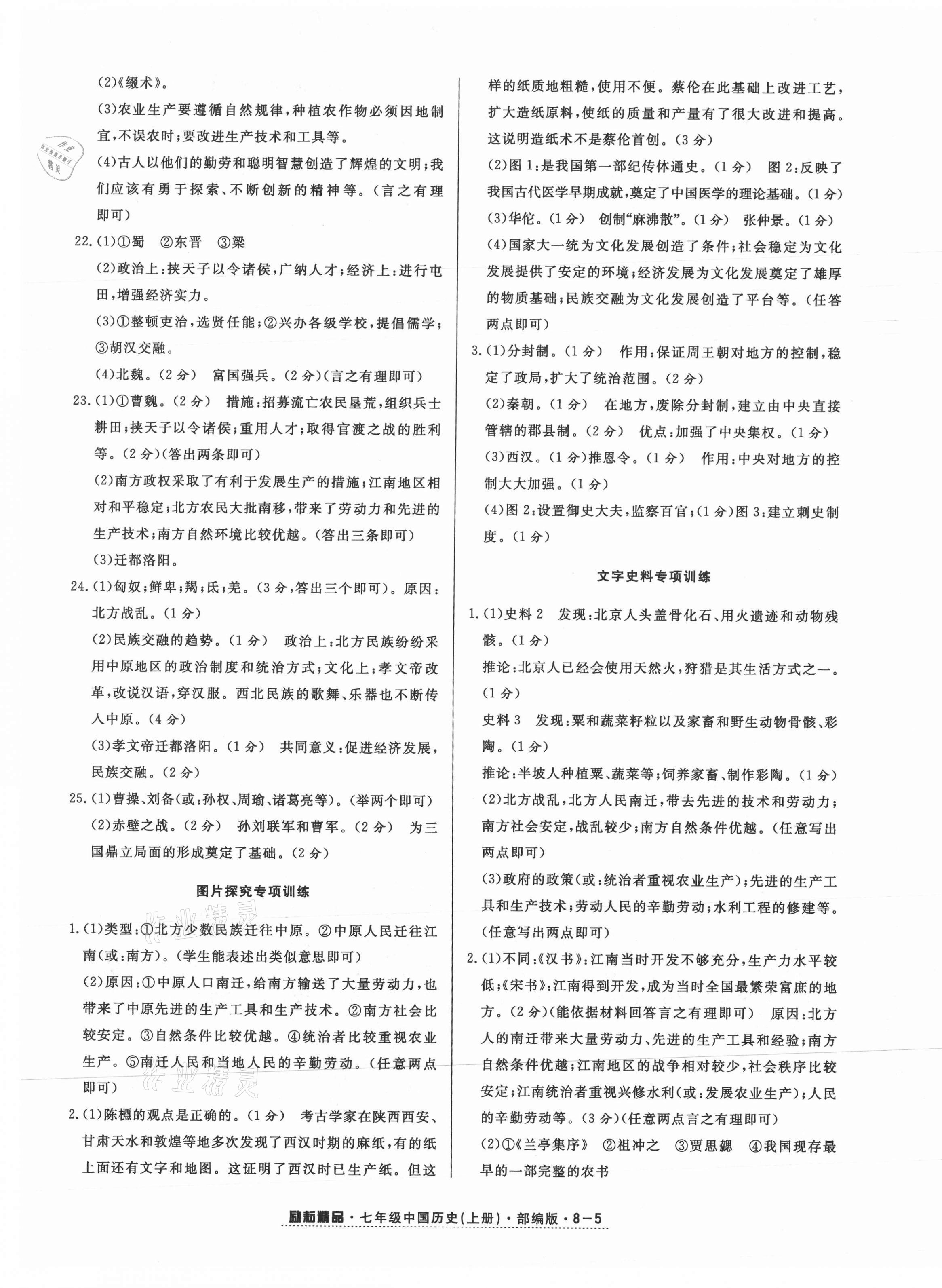 2021年励耘活页七年级历史上册人教版