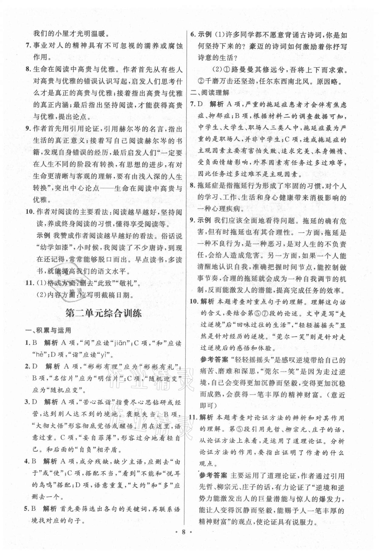 注:目前有些书本章节名称可能整理的还不是很完善,但都是按照顺序排列的,请同学们按照顺序仔细查找。练习册 2021年同步测控优化设计九年级语文上册人教版精编版专版 答案主要是用来给同学们做完题方便对答案用的,请勿直接抄袭。