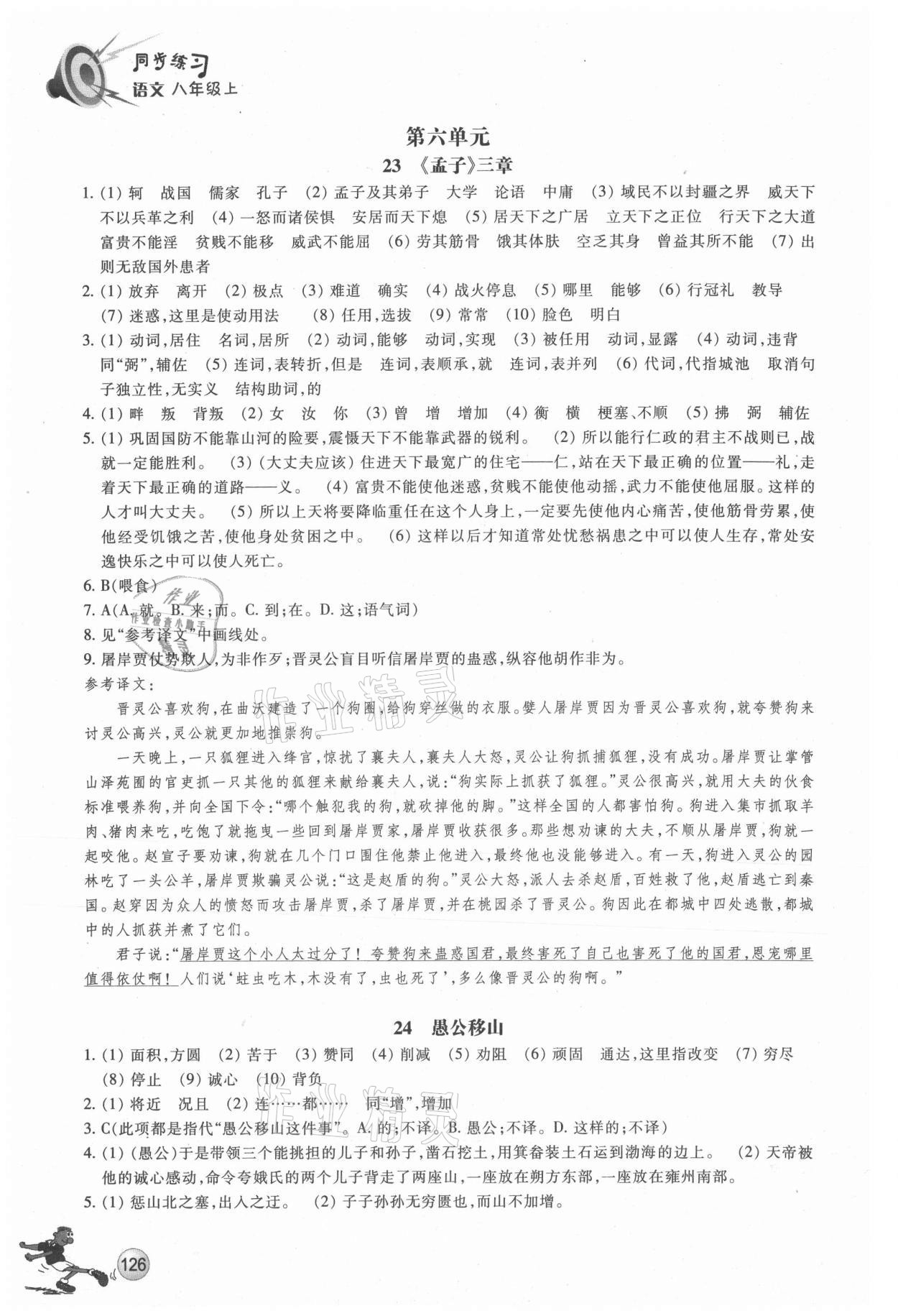 注:目前有些书本章节名称可能整理的还不是很完善,但都是按照顺序排列的,请同学们按照顺序仔细查找。练习册 2021年同步练习浙江教育出版社八年级语文上册人教版 答案主要是用来给同学们做完题方便对答案用的,请勿直接抄袭。
