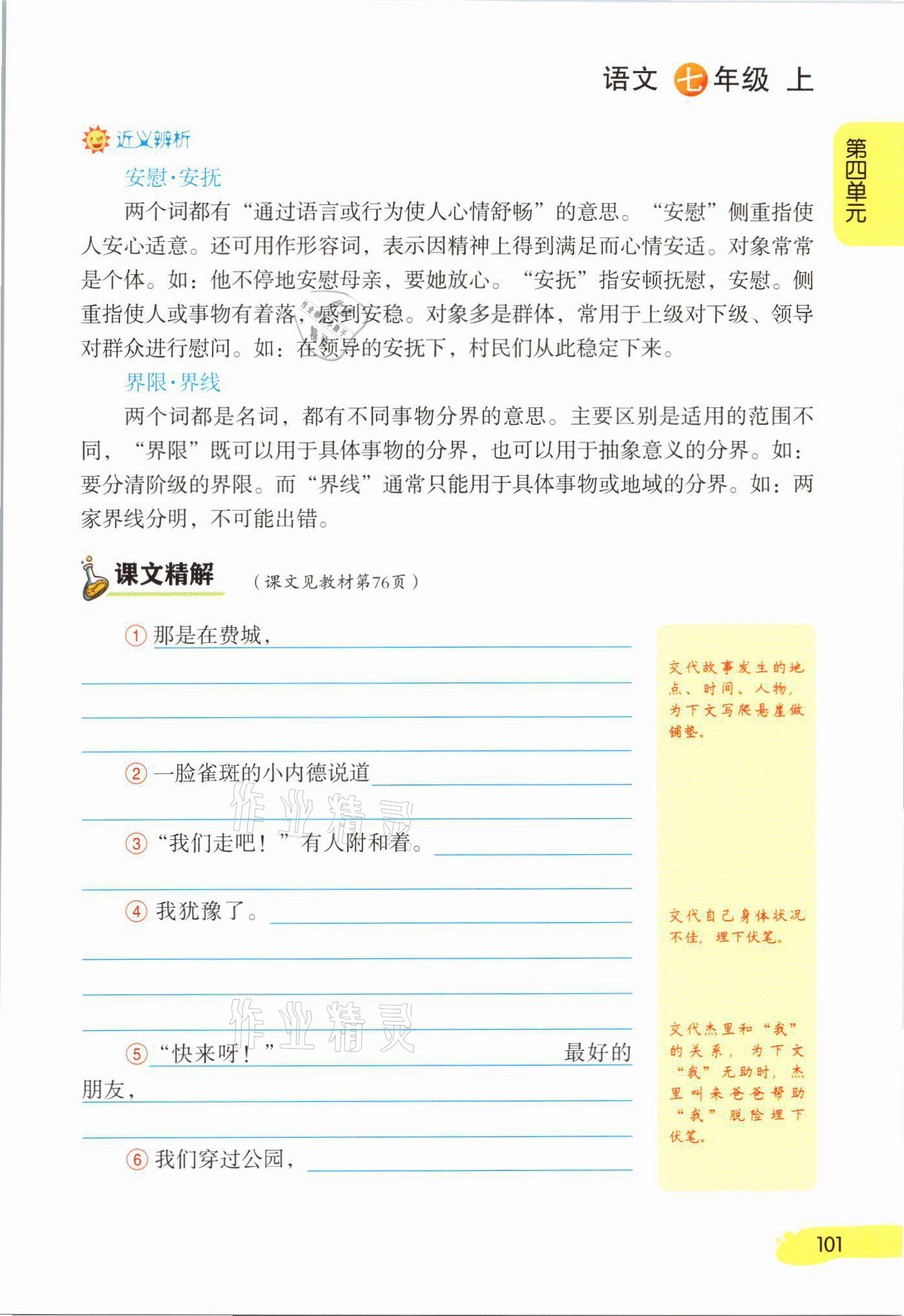注:目前有些书本章节名称可能整理的还不是很完善,但都是按照顺序排列的,请同学们按照顺序仔细查找。练习册 2021年课堂笔记七年级语文上册人教版 答案主要是用来给同学们做完题方便对答案用的,请勿直接抄袭。
