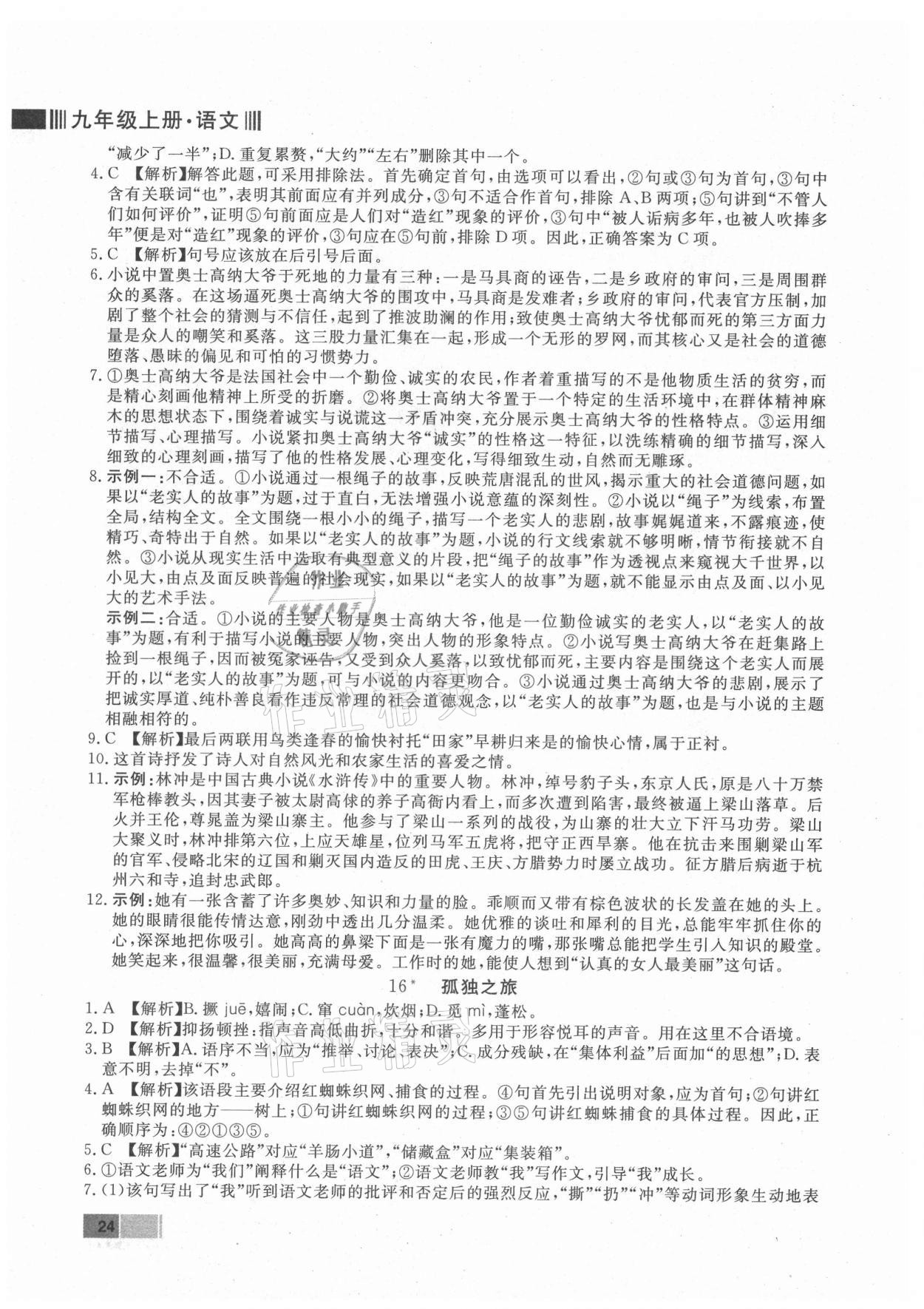 注:目前有些书本章节名称可能整理的还不是很完善,但都是按照顺序排列的,请同学们按照顺序仔细查找。练习册 2021年赢在新课堂九年级语文上册人教版江西专版 答案主要是用来给同学们做完题方便对答案用的,请勿直接抄袭。
