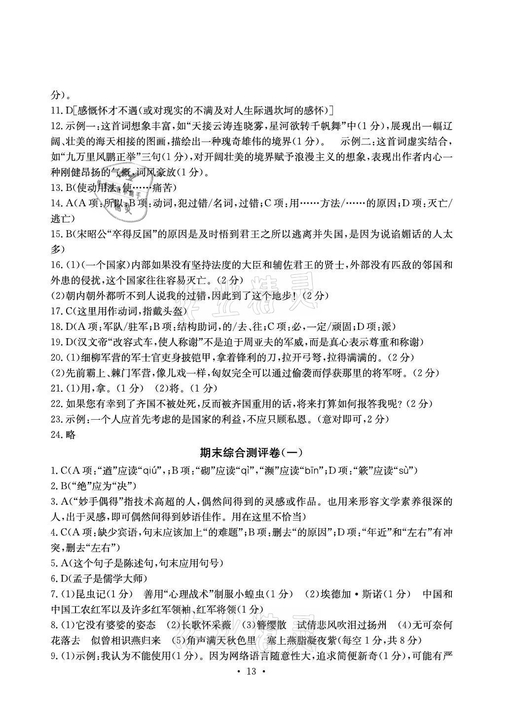 注:目前有些书本章节名称可能整理的还不是很完善,但都是按照顺序排列的,请同学们按照顺序仔细查找。练习册 2021年大显身手素质教育单元测评卷八年级语文上册人教版 答案主要是用来给同学们做完题方便对答案用的,请勿直接抄袭。
