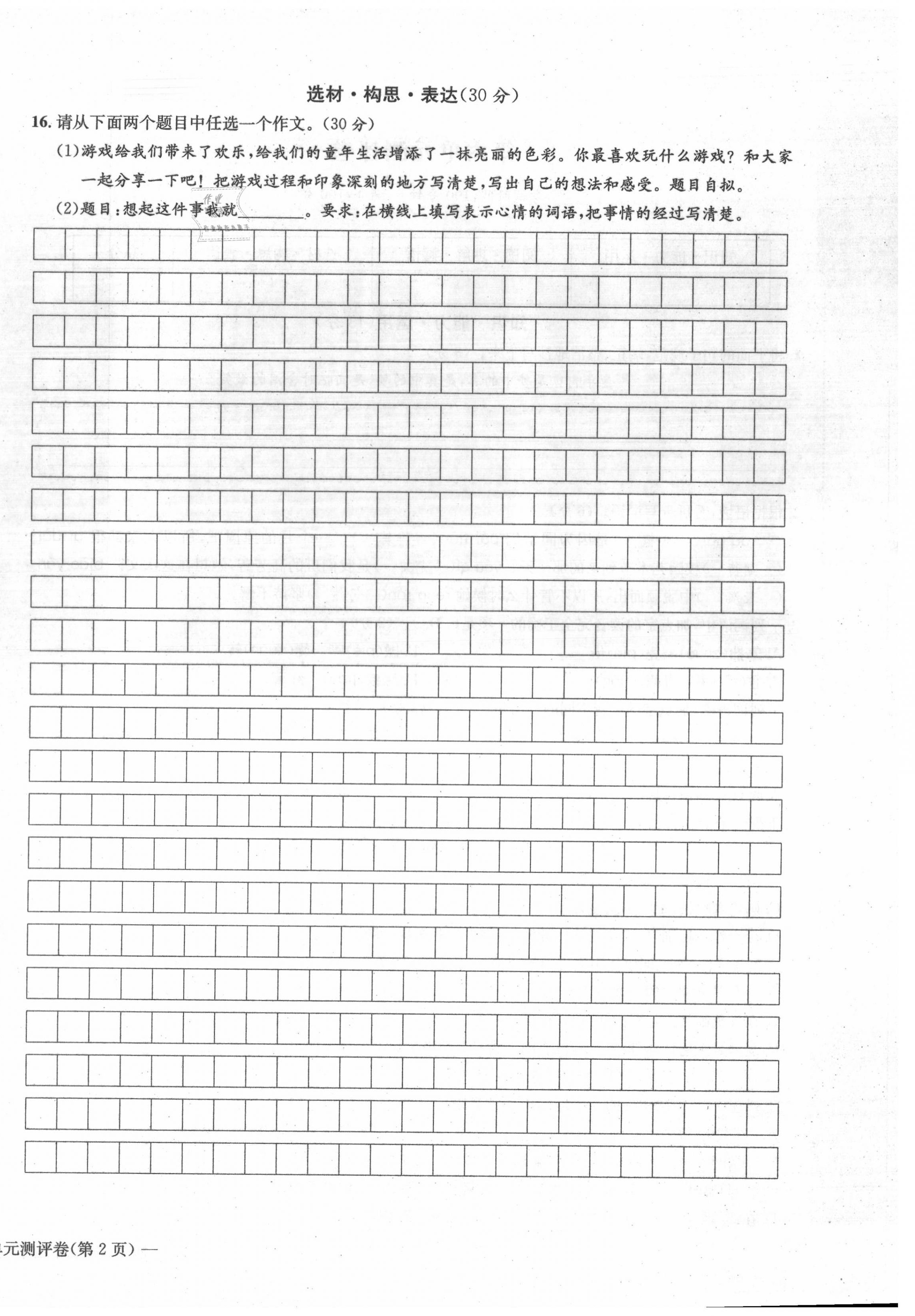 2021年学业评价测评卷四年级语文上册人教版
