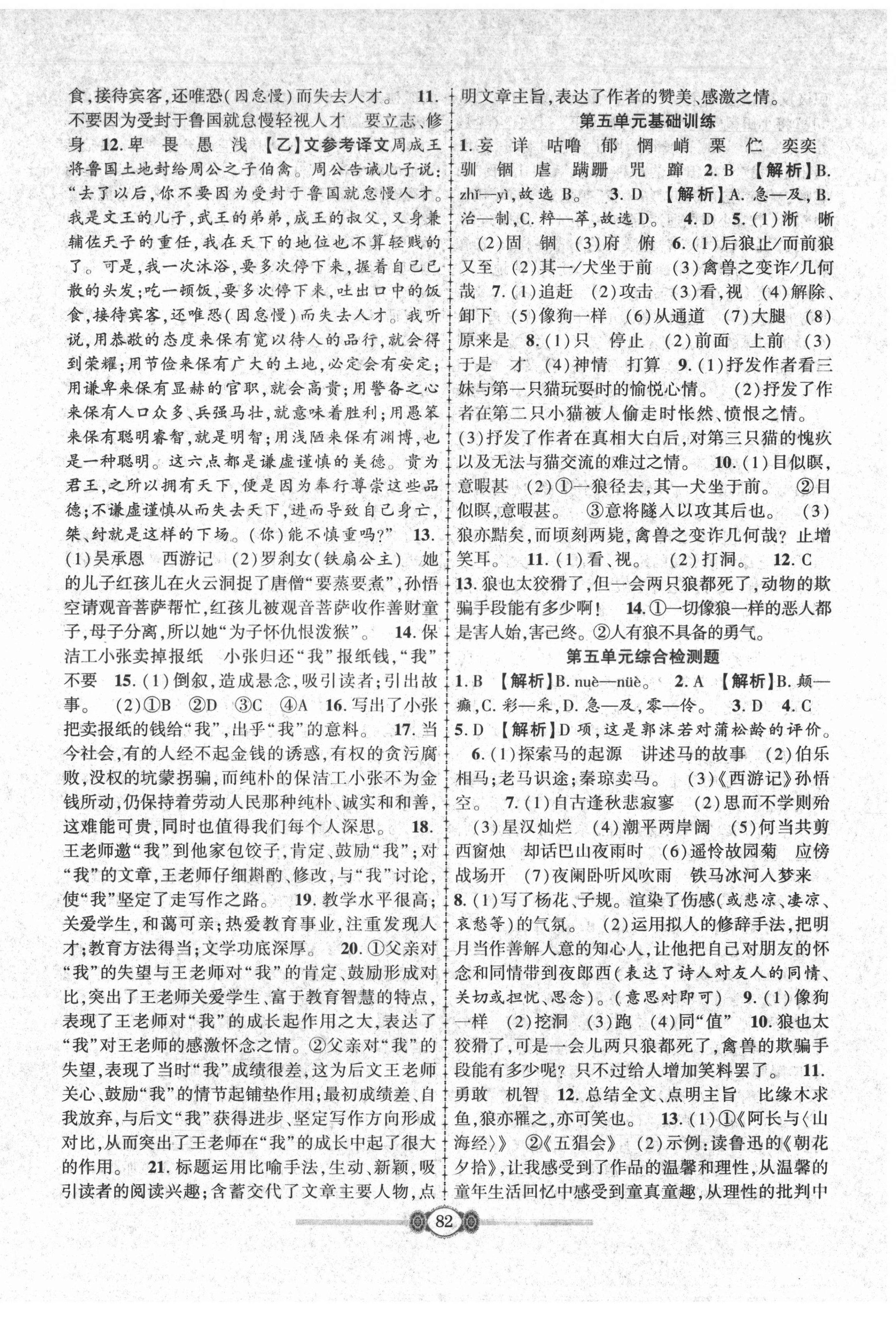 注:目前有些书本章节名称可能整理的还不是很完善,但都是按照顺序排列的,请同学们按照顺序仔细查找。练习册 2021年金榜名卷单元加期末七年级语文上册人教版 答案主要是用来给同学们做完题方便对答案用的,请勿直接抄袭。