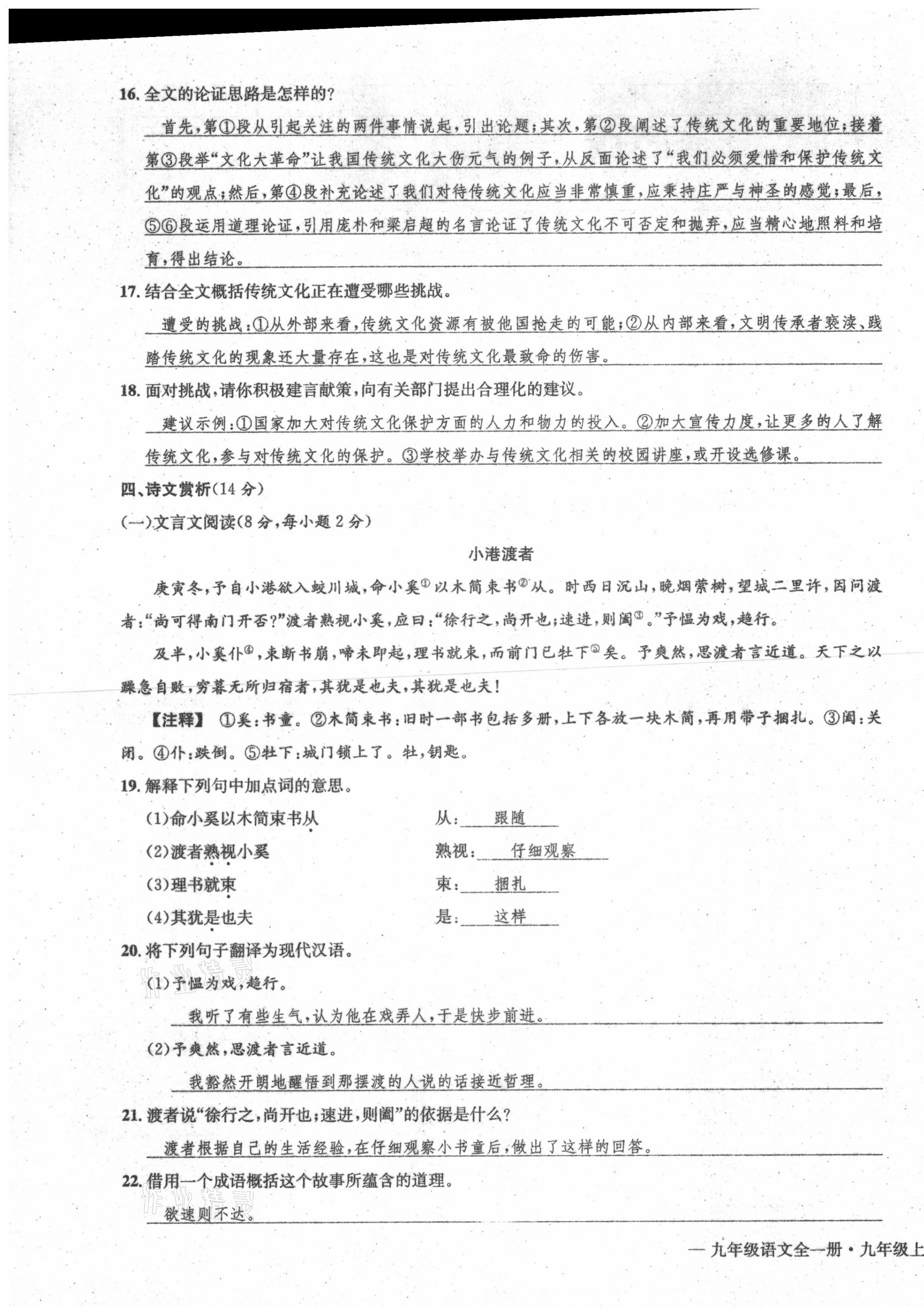 注:目前有些书本章节名称可能整理的还不是很完善,但都是按照顺序排列的,请同学们按照顺序仔细查找。练习册 2021年课堂巩固练习九年级语文全一册人教版 答案主要是用来给同学们做完题方便对答案用的,请勿直接抄袭。