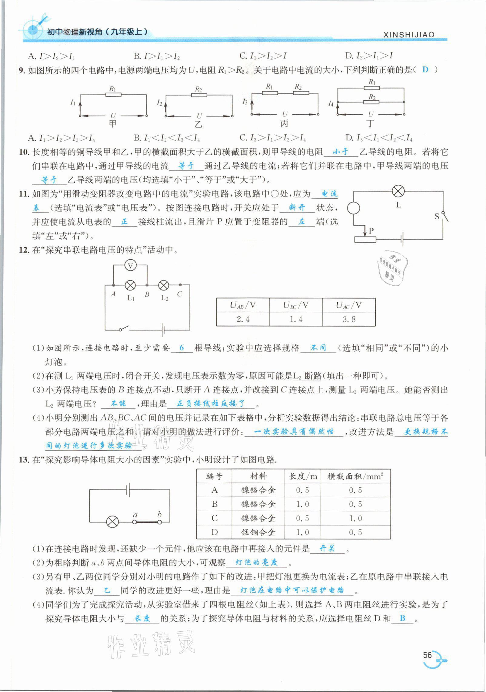 2021年新视角教辅系列丛书九年级物理上册人教版
